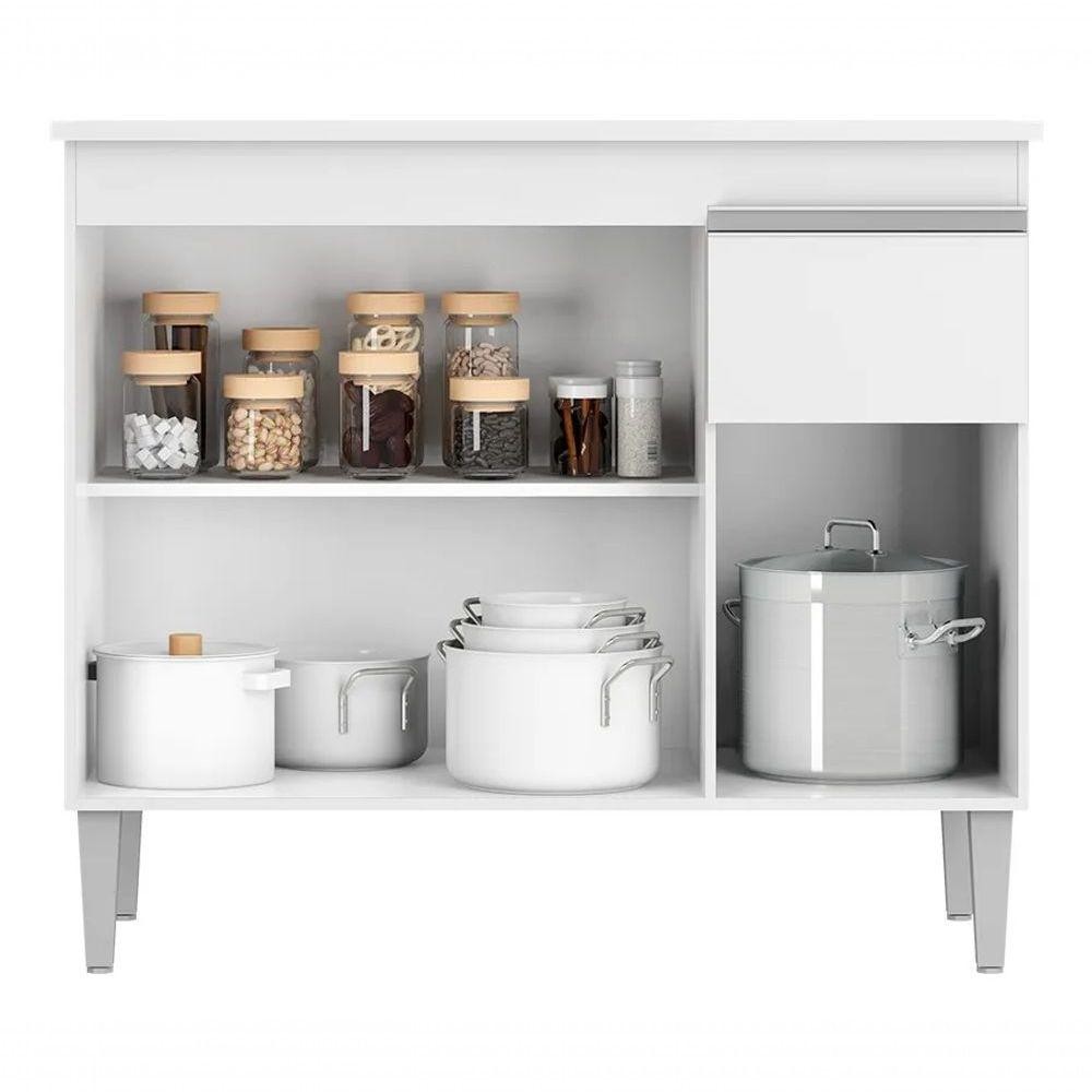 Balcão De Cozinha Para Pia Tatiane 100cm 3 Portas 1 Gaveta Sem Tampo Branco