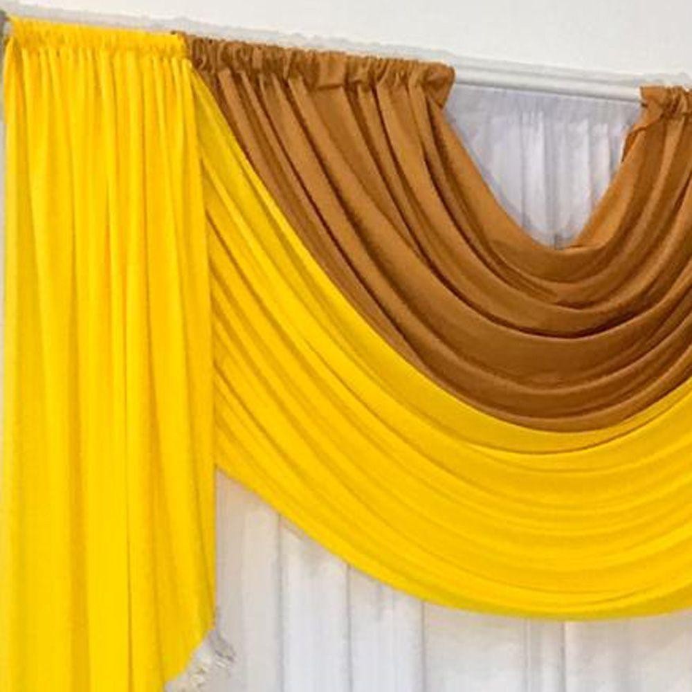 Cortina Mayara Varão Duplo Malha e Franja 3,00m x 2,60m Sala Quarto - Amarelo Mostarda Branco