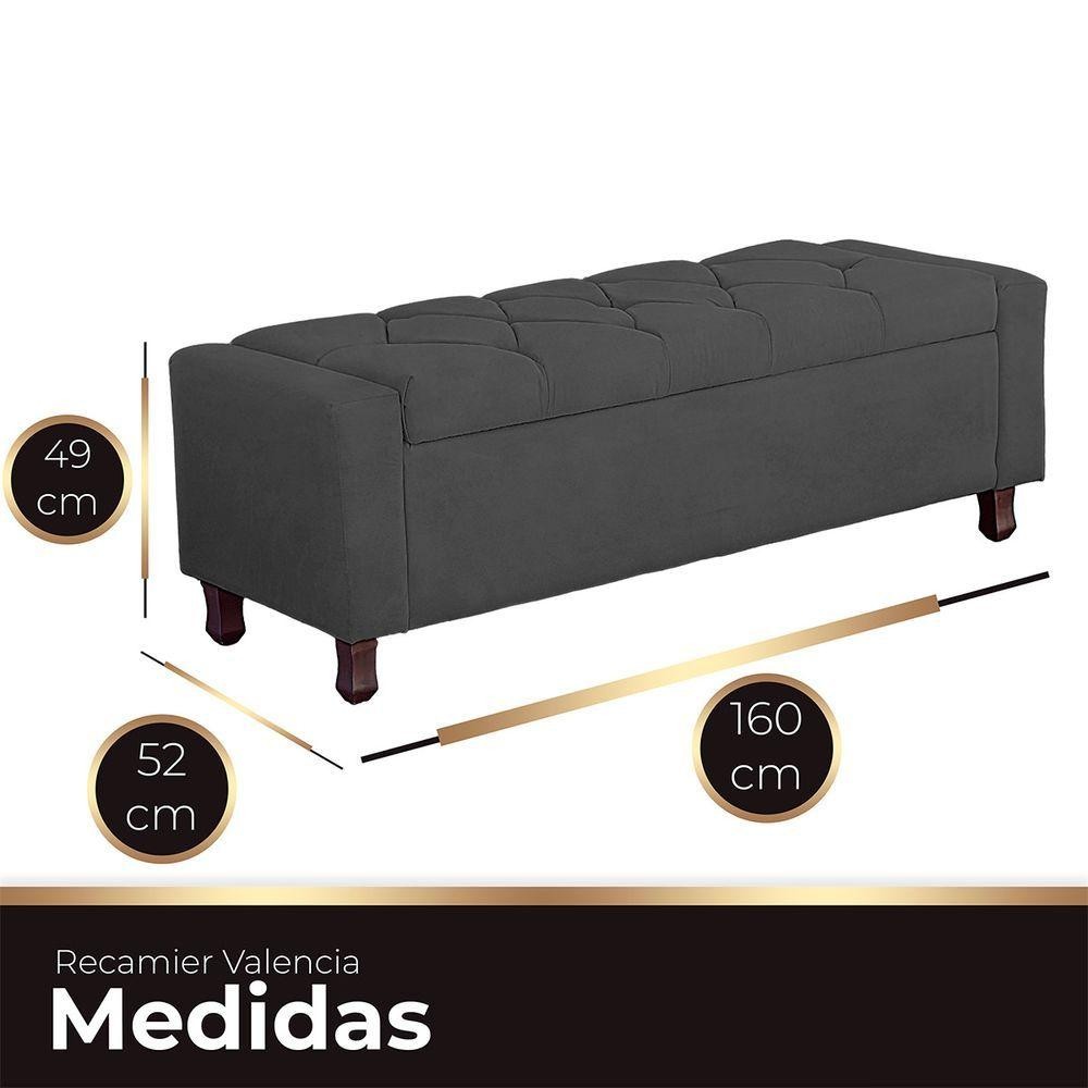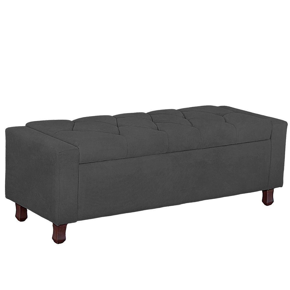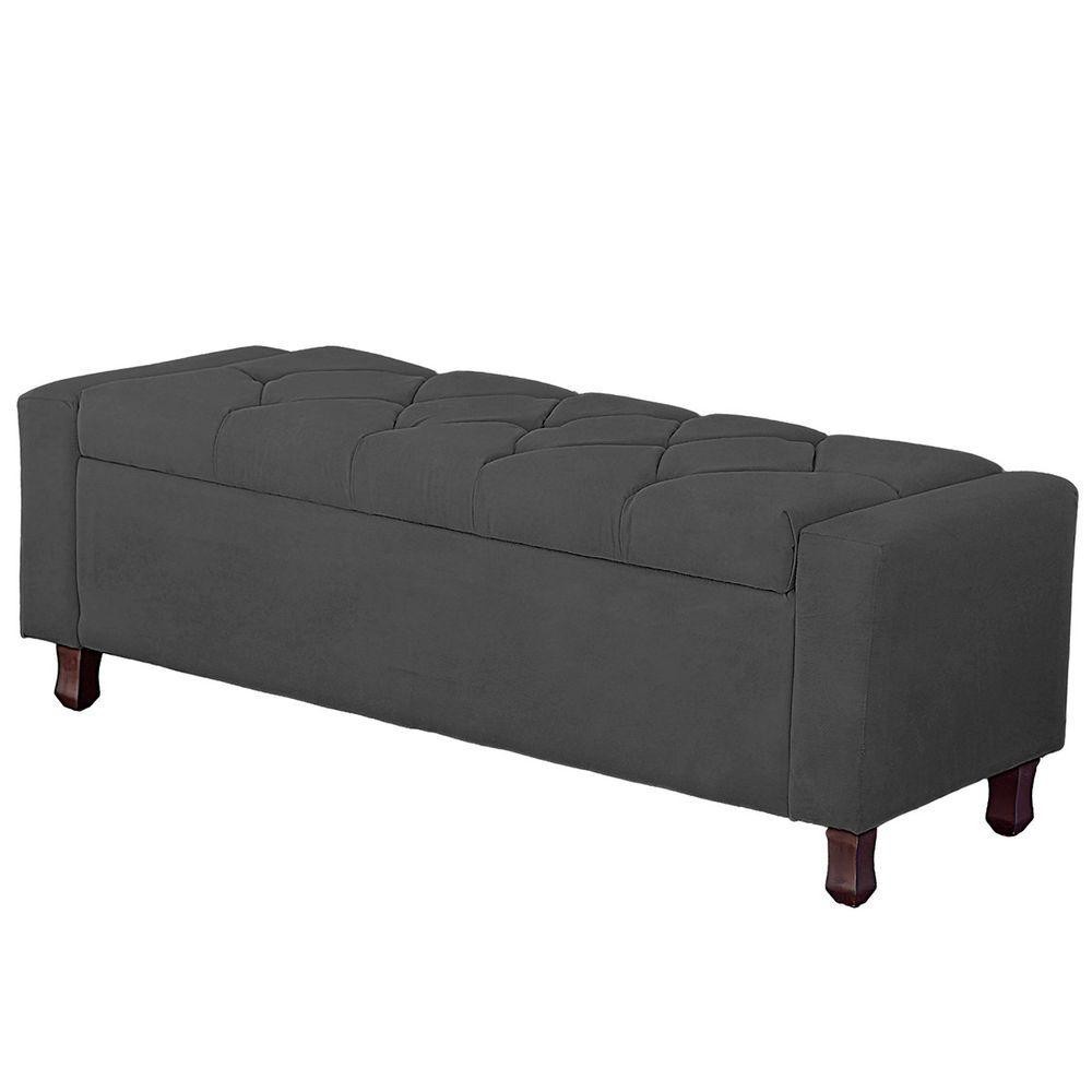Calçadeira Baú Casal Queen Estofada Valencia Veludo Cinza Escuro