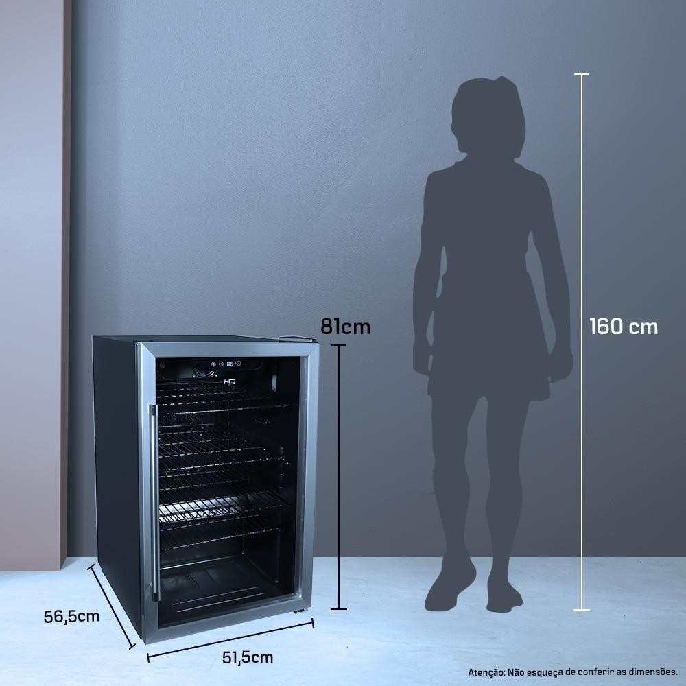 Cervejeira Expositor Vertical HQ Vidro Duplo 125 Litros Preta E Inox HQ-125CEVPV 220V