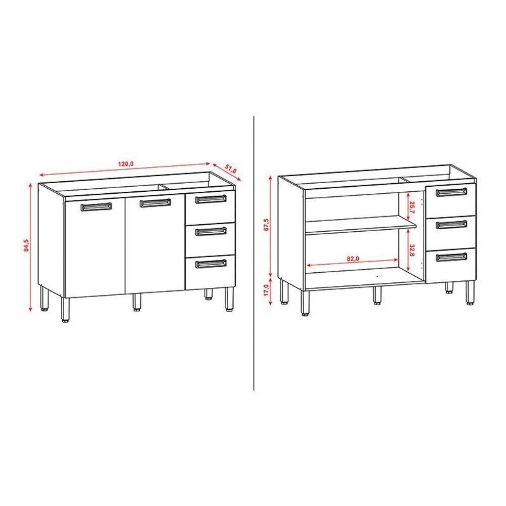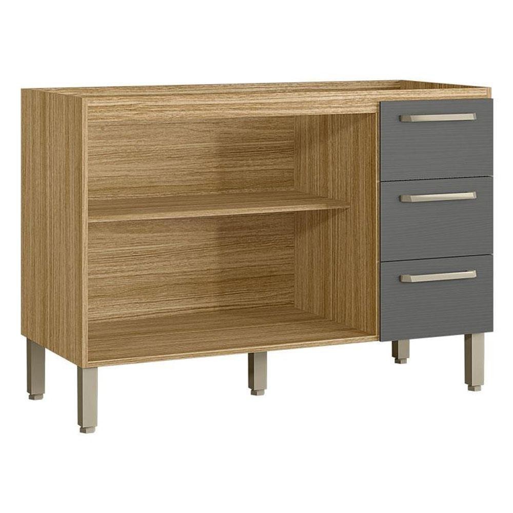 Balcão De Pia Ametista 2 Portas 3 Gavetas 120 Cm Freijó Gris - Kits Paraná