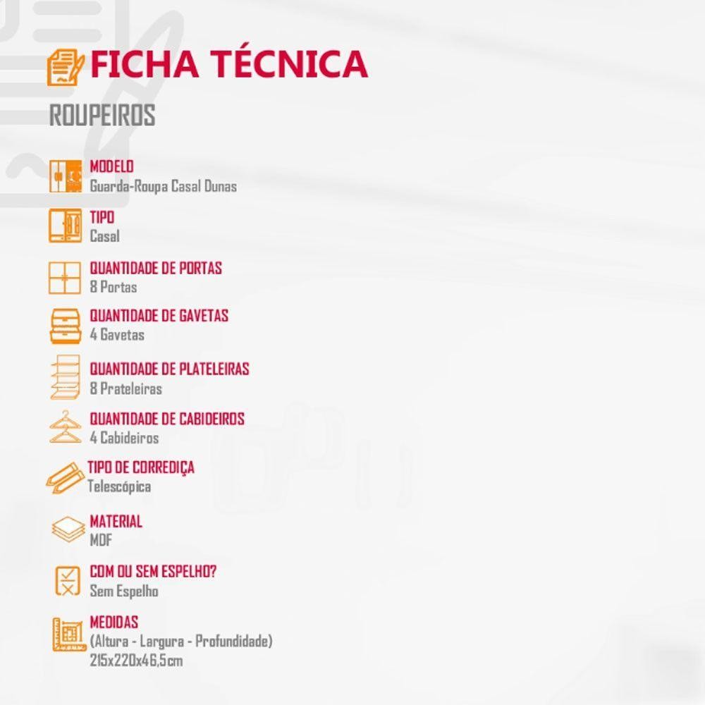 Guarda Roupa Casal Dunas Com 8 Portas E 4 Gavetas Moderna Naturalle/off White
