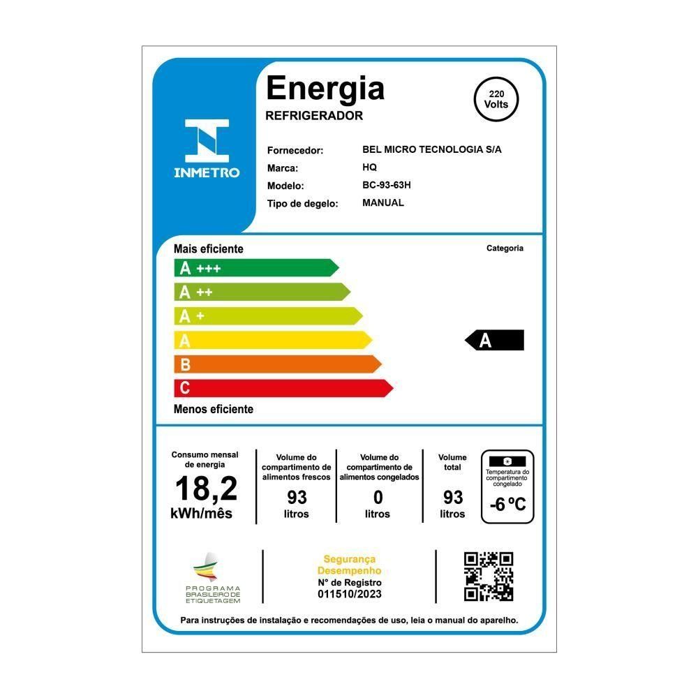 Frigobar Geladeira HQ 93 Litros Preto BC-93 220V