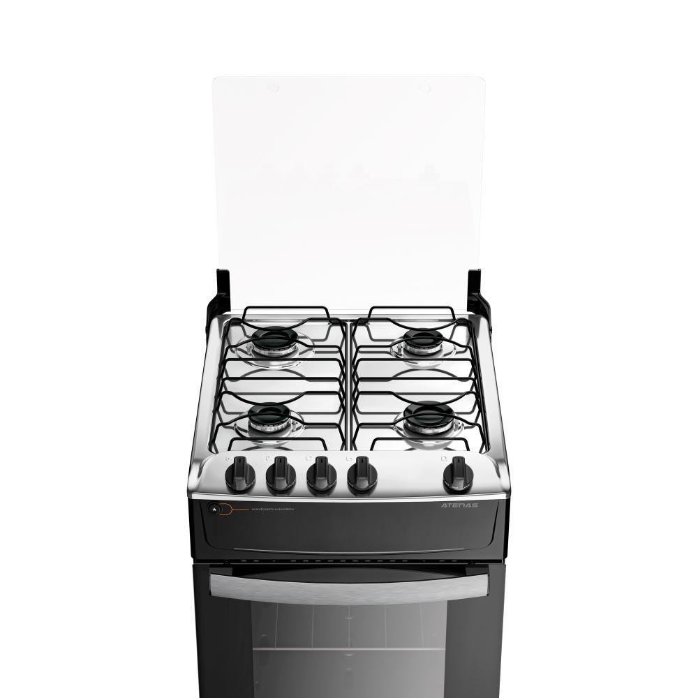 Fogão 4 Bocas Preto Com Mesa Inox Atlas Atenas Bivolt