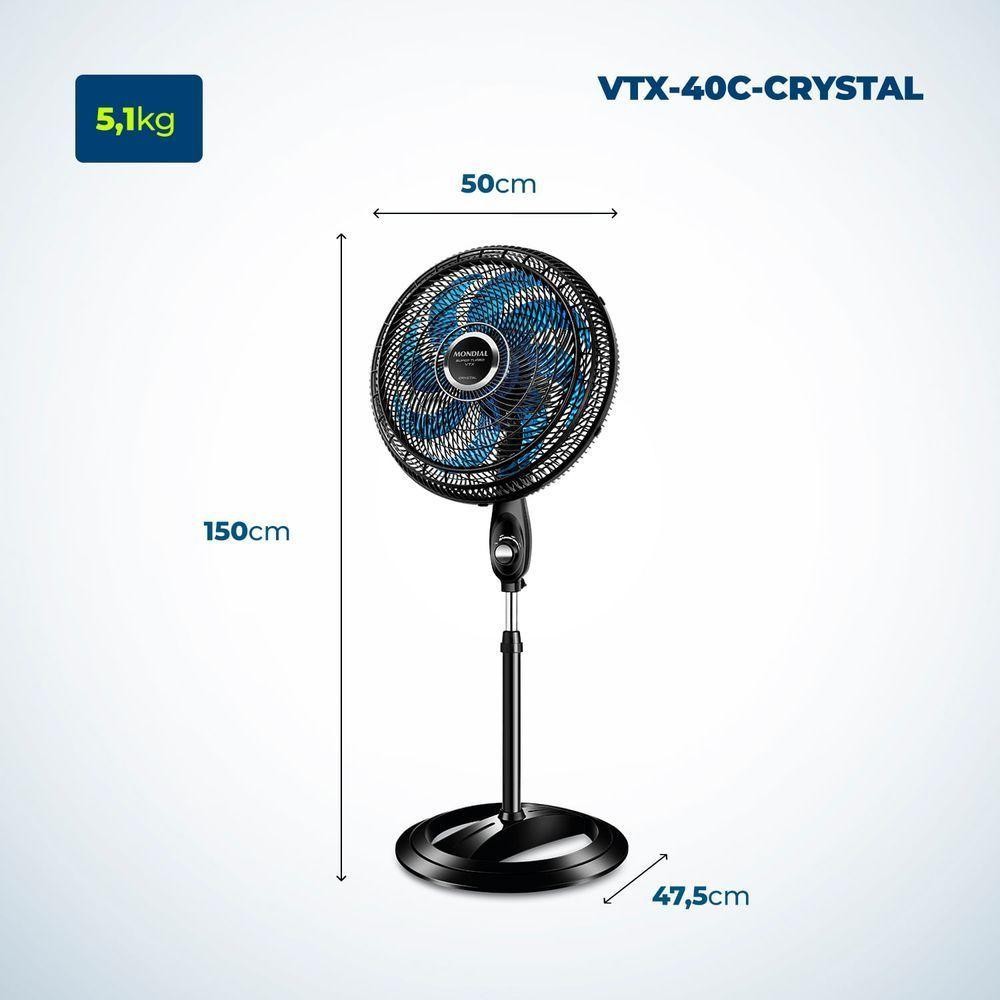 Ventilador De Coluna Super Turbo 8 Pás Mondial VTX-40C-Crystal Vent 40cm 60hz 220V