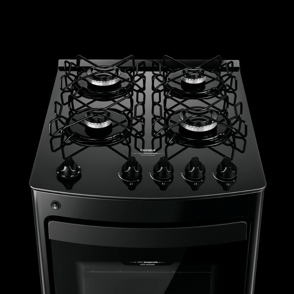 Fogão Consul 4 Bocas com Mesa de Vidro e Grades Individuais Super Estáveis Preto CFO4VBEUNA Bivolt