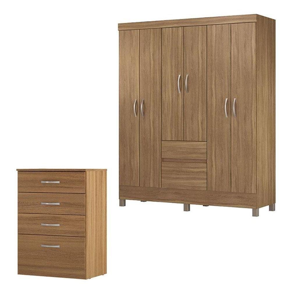 Cômoda Astral E Guarda Roupa Casal Flash 2 Amêndola Touch - Demóbile