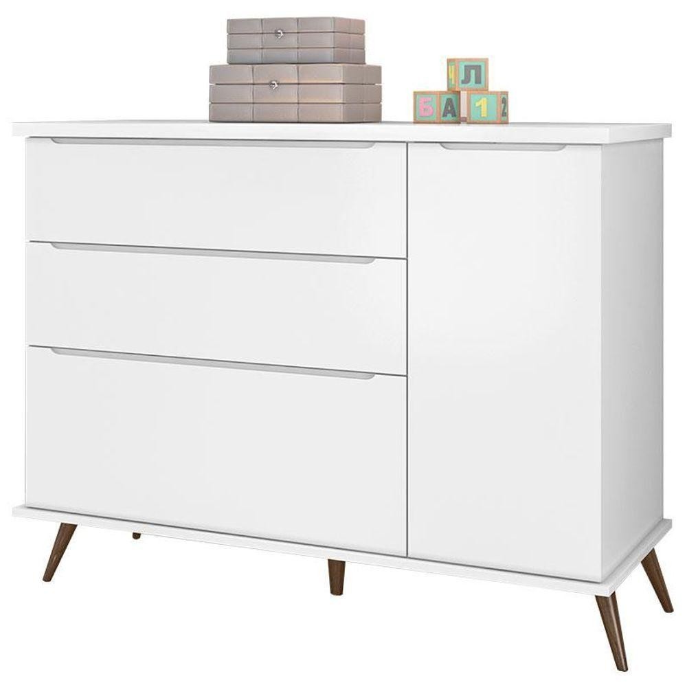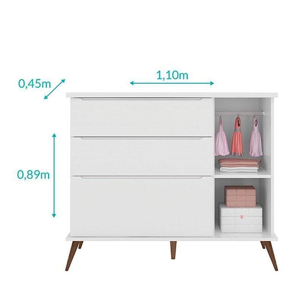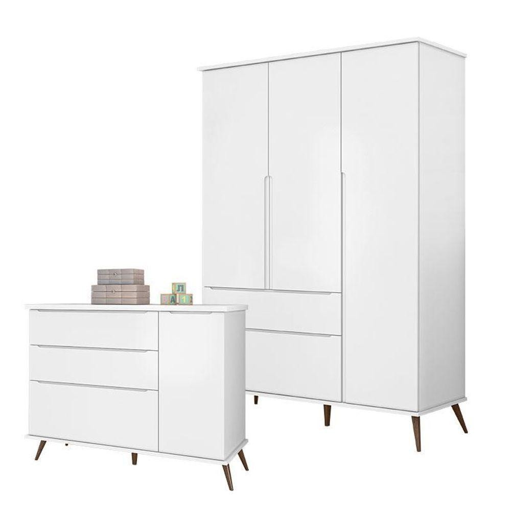 Cômoda E Guarda Roupa Infantil Retro Alice Branco Acetinado - Phoenix Baby