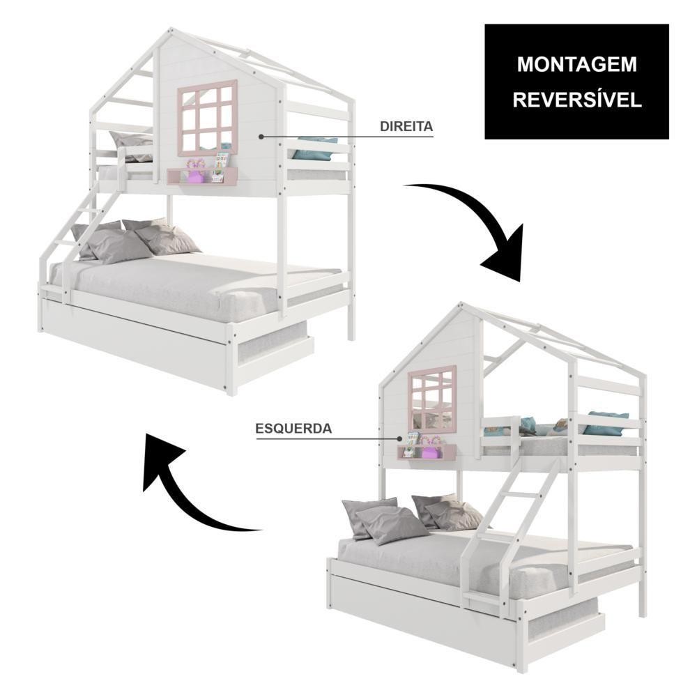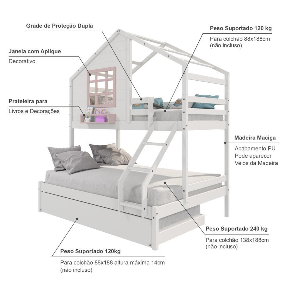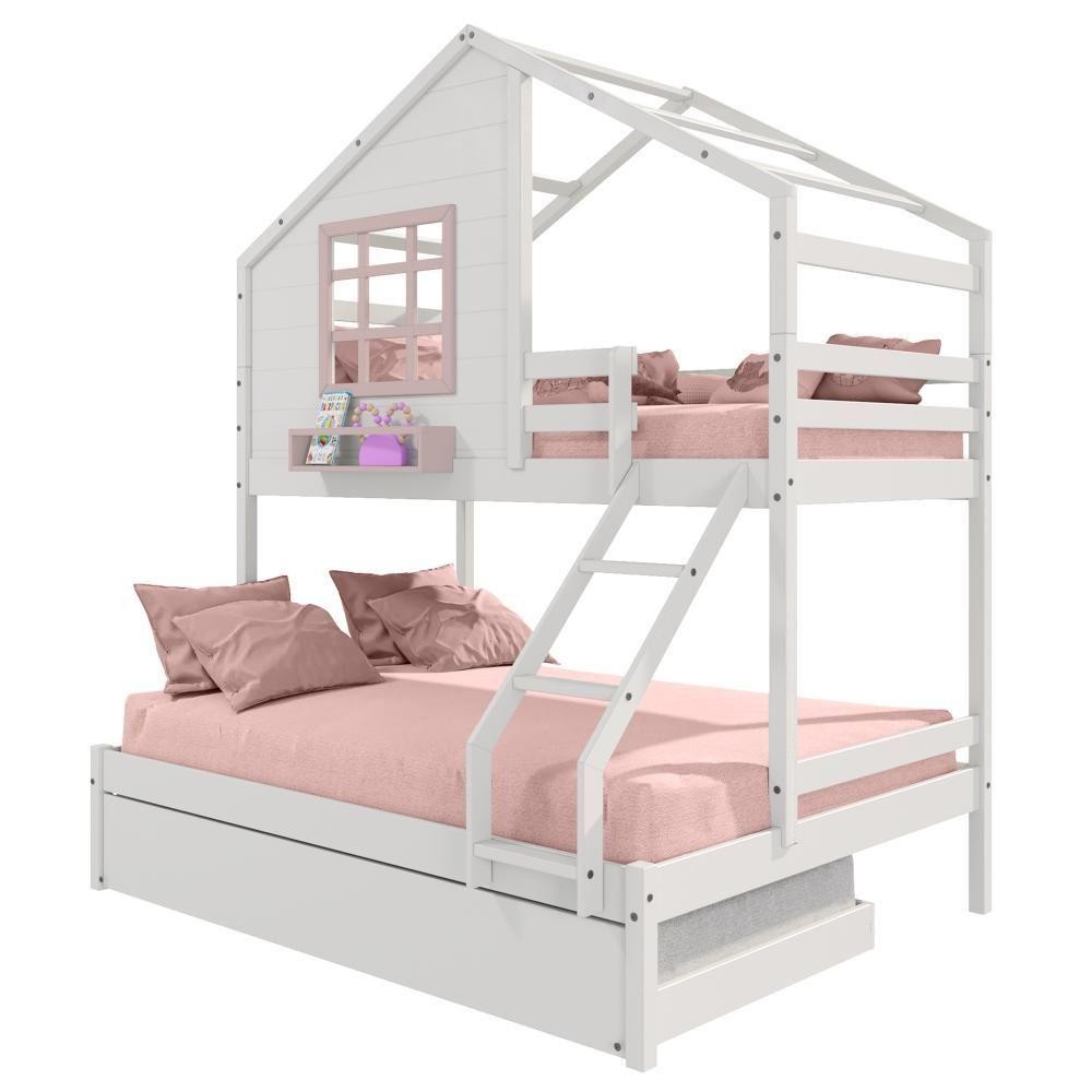 Treliche Casinha Janela Casal/Solteiro Madeira Branco-Rosa