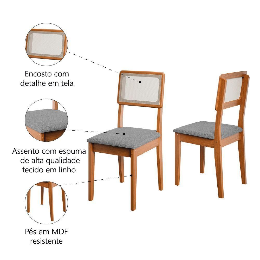 Conjunto 2 Cadeiras Encosto Em Tela Sala De Jantar Santiago Dobuê Madeirado / Cinza
