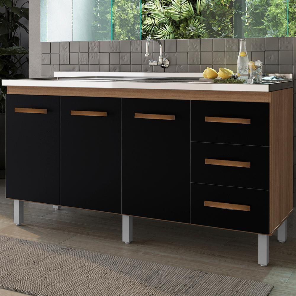 Balcao Sem Tampo Para Pia 160cm 9140 Savana Preto Mobbs Savana Preto