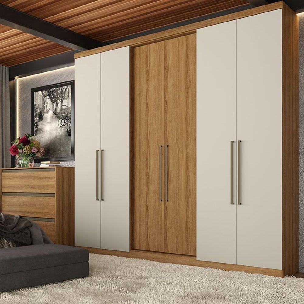 Guarda Roupa Casal Presence 6 Portas Almendra Off White Acetinado - Thb
