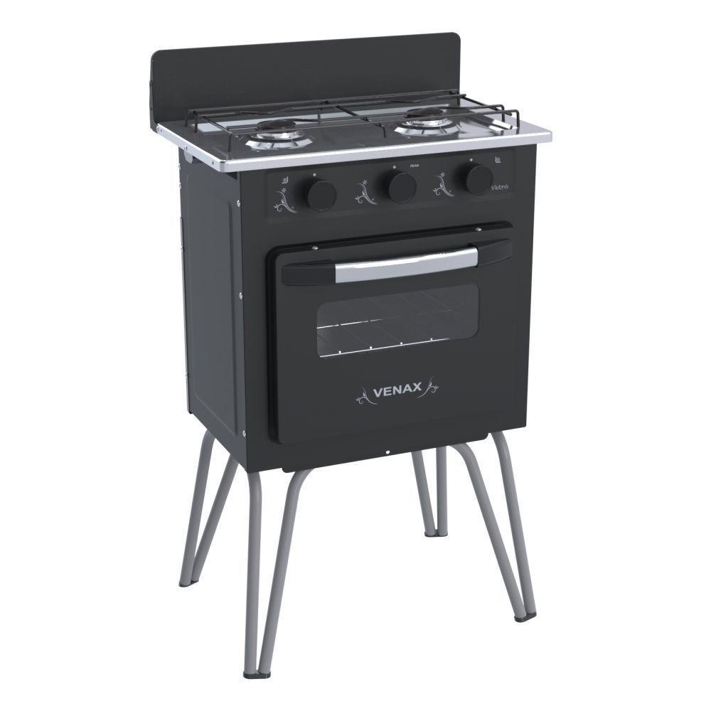 Fogão Portátil 2 Bocas Venax Gemini Vetrô Gás GLP Preto Fosco