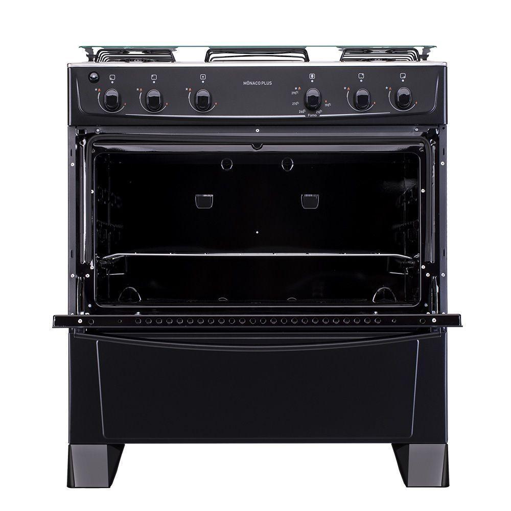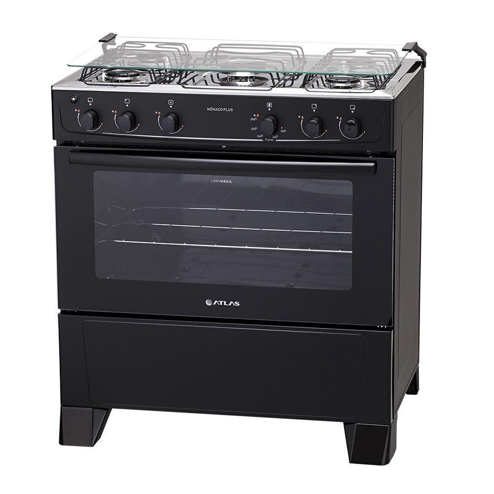 Fogão 5 Bocas Atlas Mônaco Plus Com Mesa Inox E Acendimento Automático Preto Bivolt