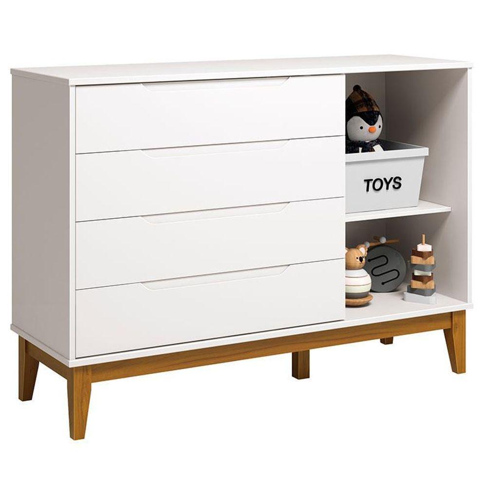 Quarto De Bebê Classic Elfe Branco Acetinado Amadeirado - Reller