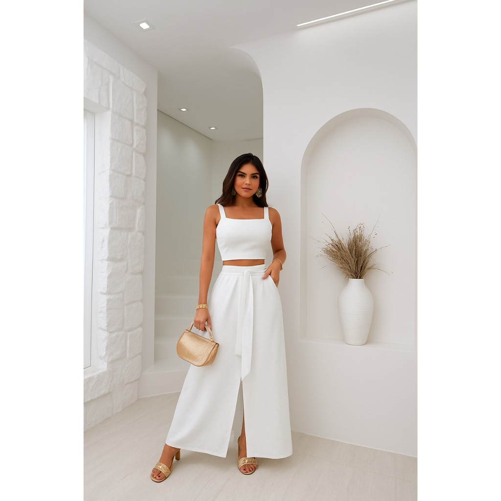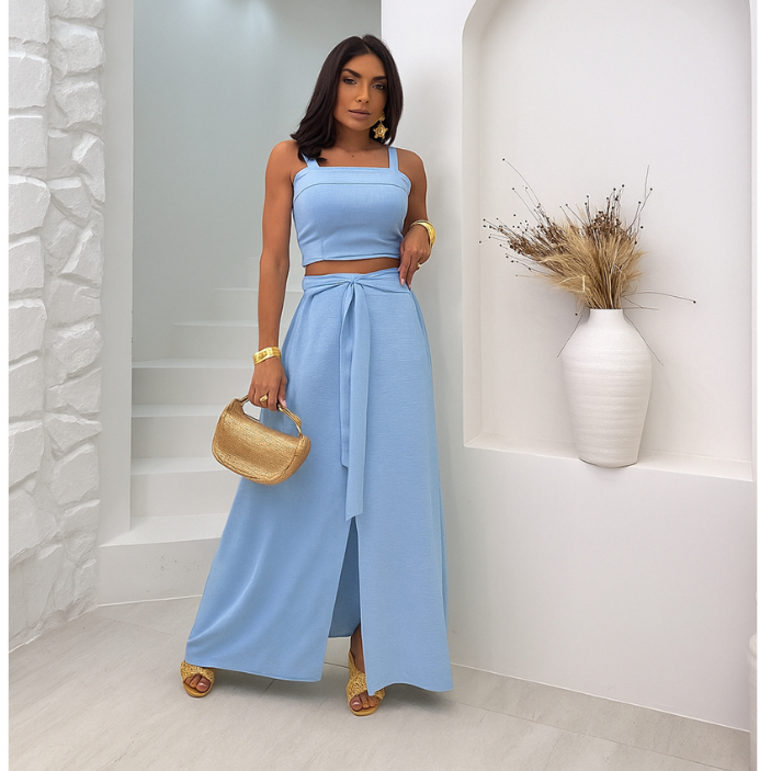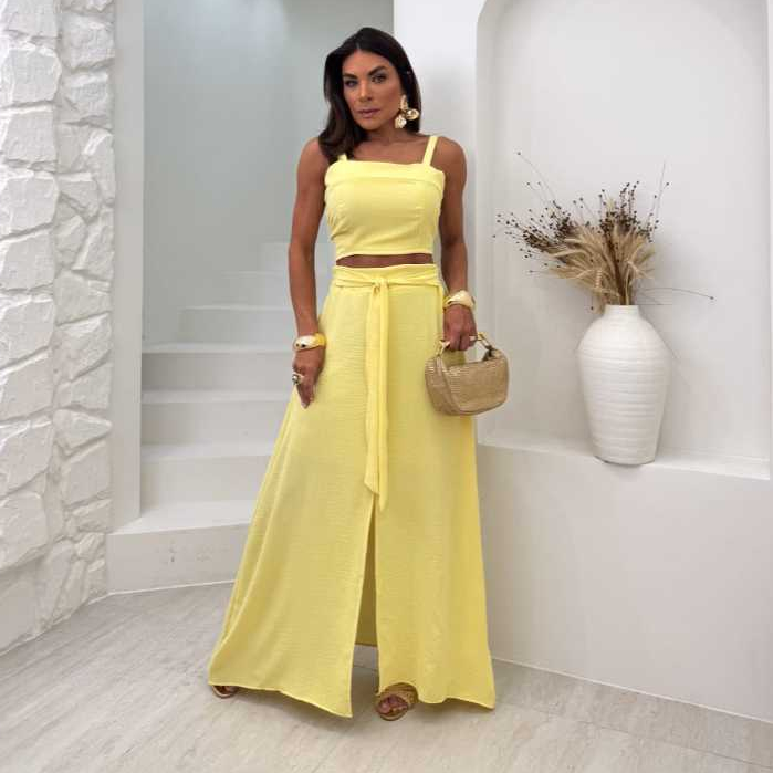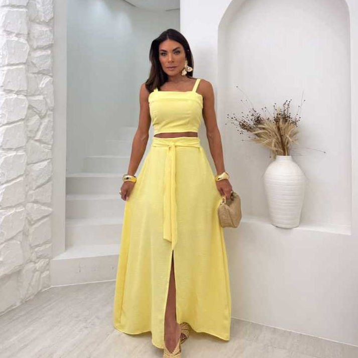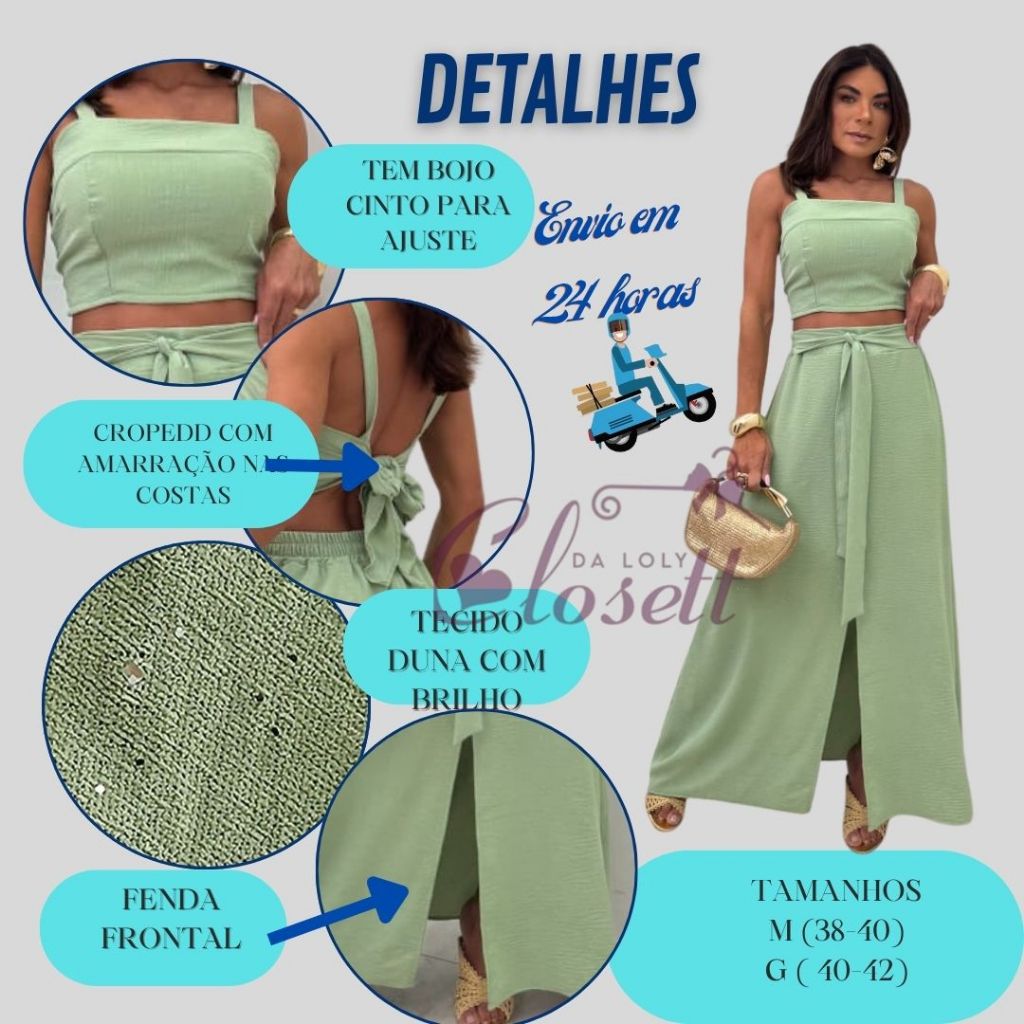 Conjunto Duna com Brilho Feminino – Top com Bojo e Amarração nas Costas + Saia Longa Forrada | Look Incrível para Festa
