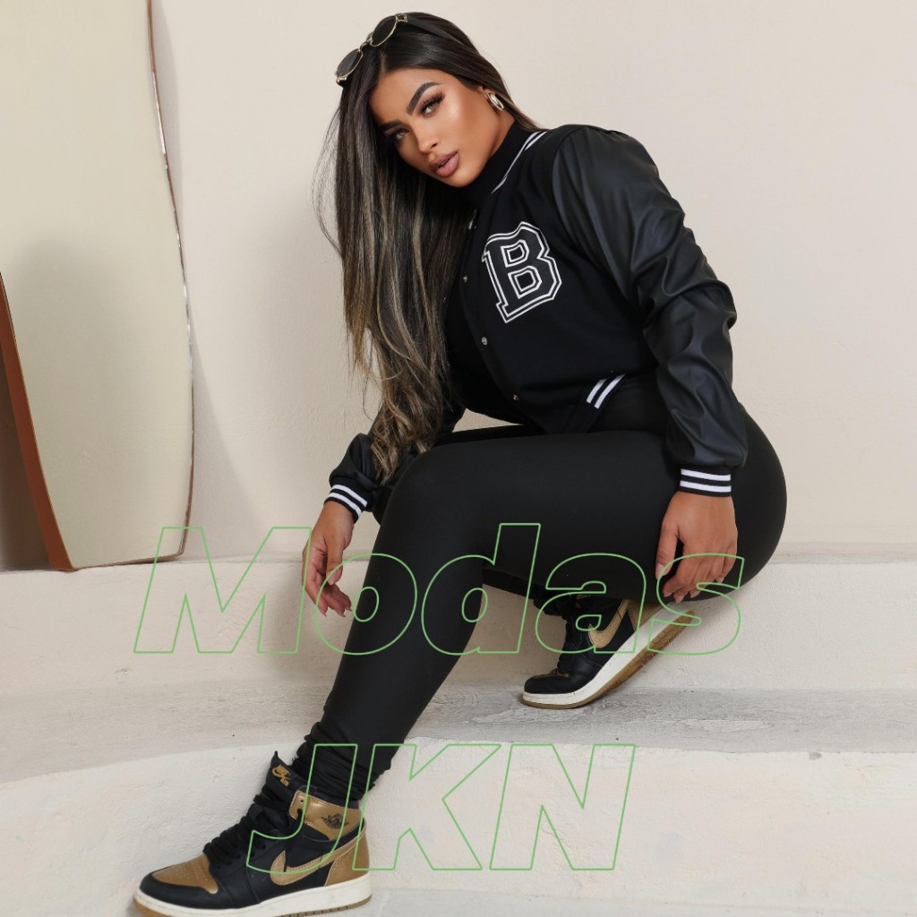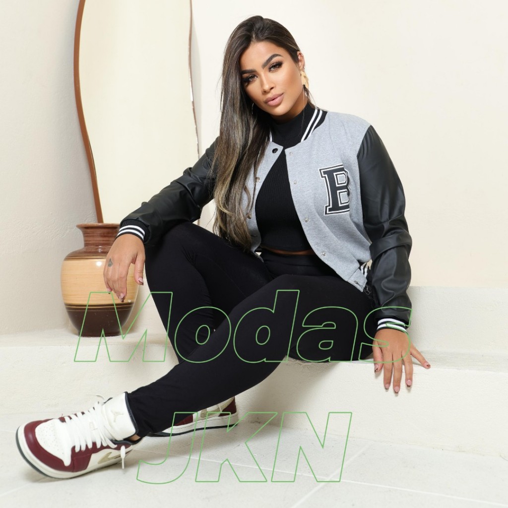 JAQUETA Bomber Feminina MANGA COURO estilo Colegial Bomber moda Blogueira Inverno