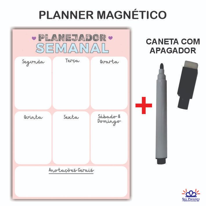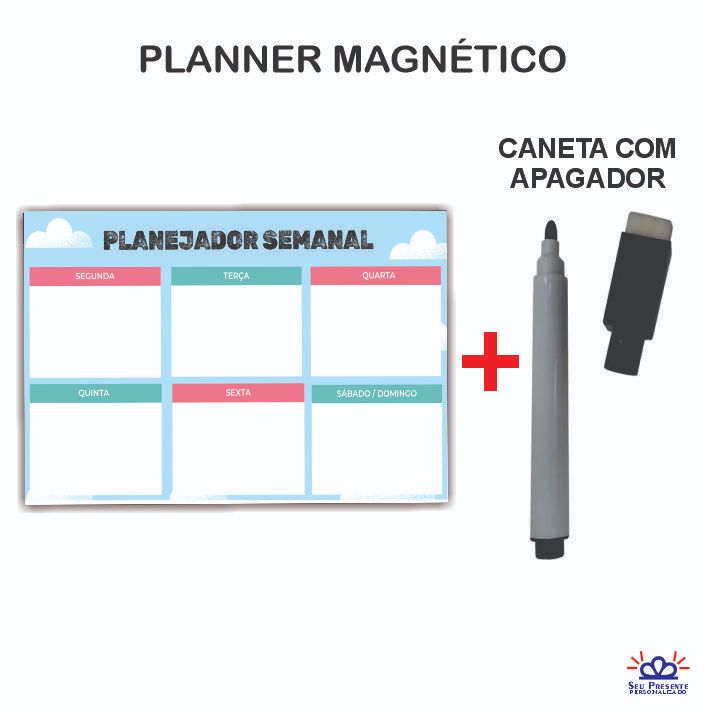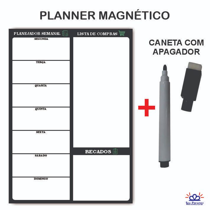 Imã de Geladeira com Manta Magnética e Caneta que Apaga e Escreve