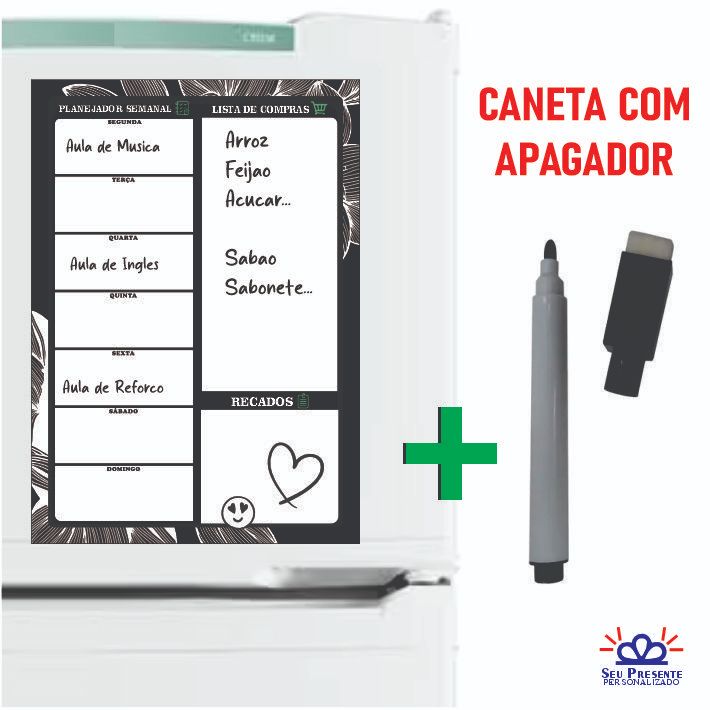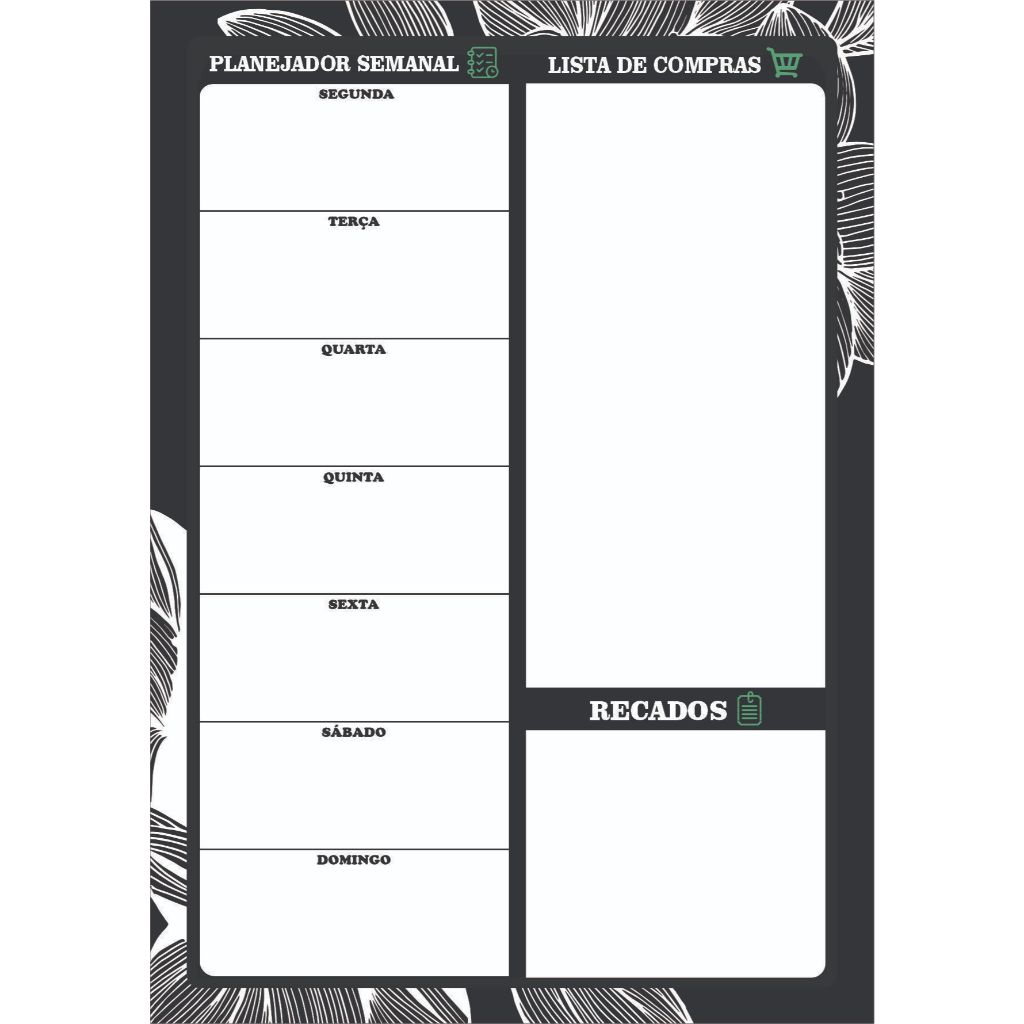 Imã de Geladeira Planner Semanal Floral Tamanho 20x28cm Magnético