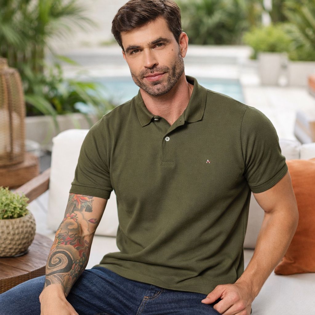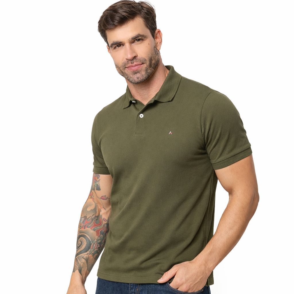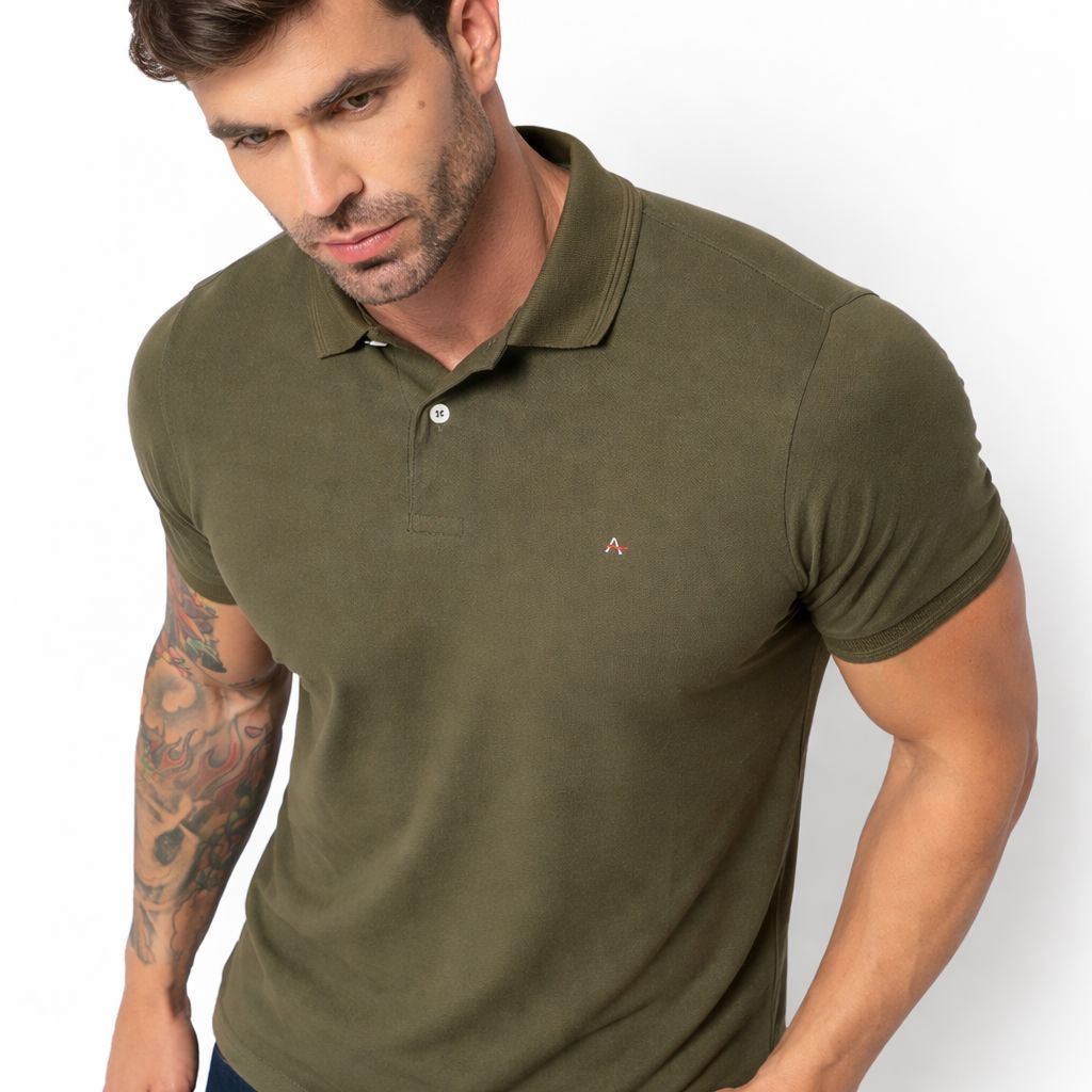 Camisa Polo Masculina Social Verde Militar Algodão 100% Premium Tecnológico Confortável Sofisticada