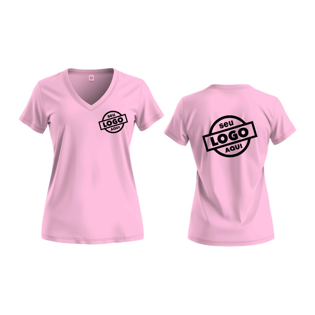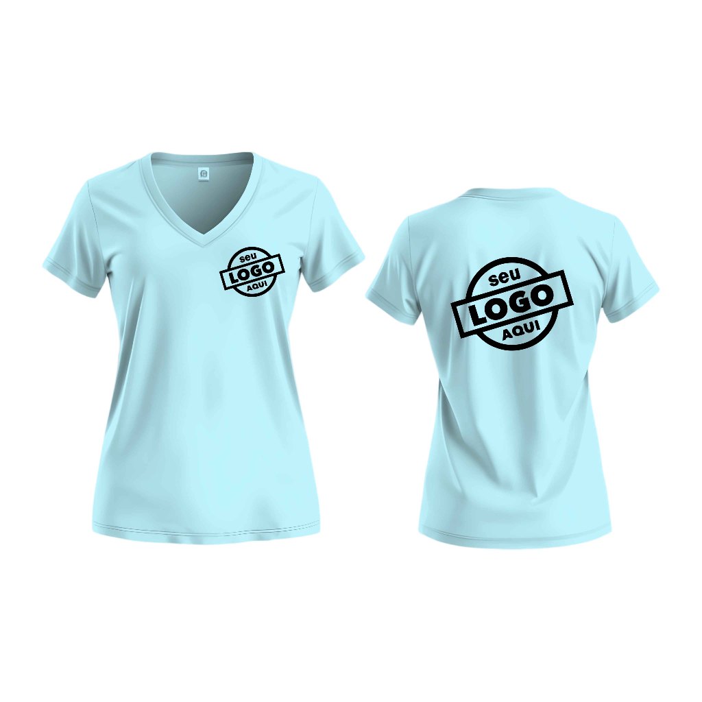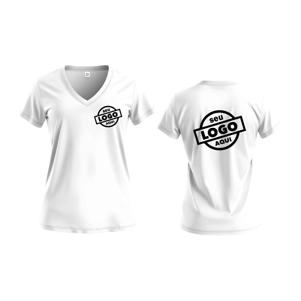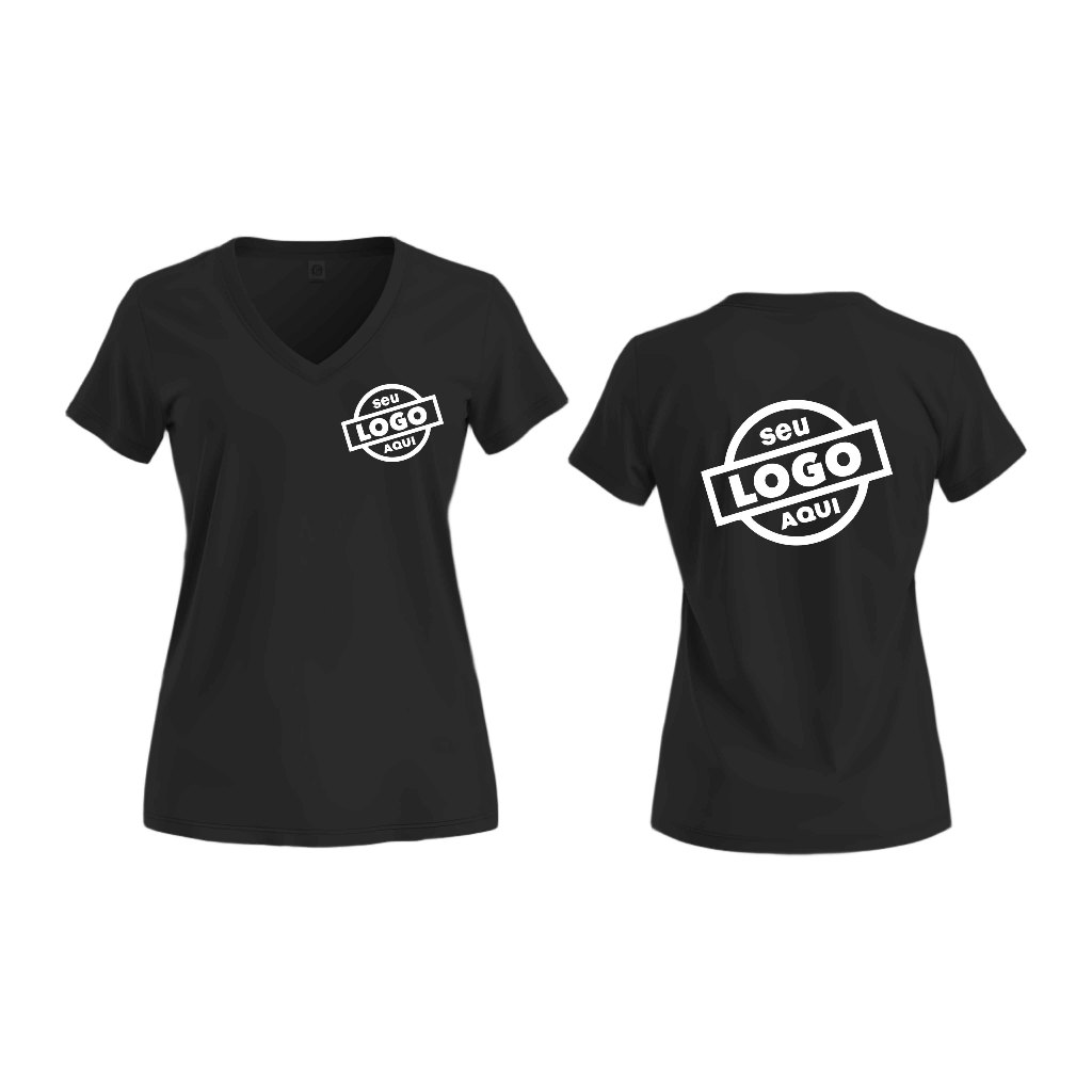 Camiseta Feminina Personalizada Sua Logo Frente e Costas Reforço Ombro a Ombro 100% Algodão