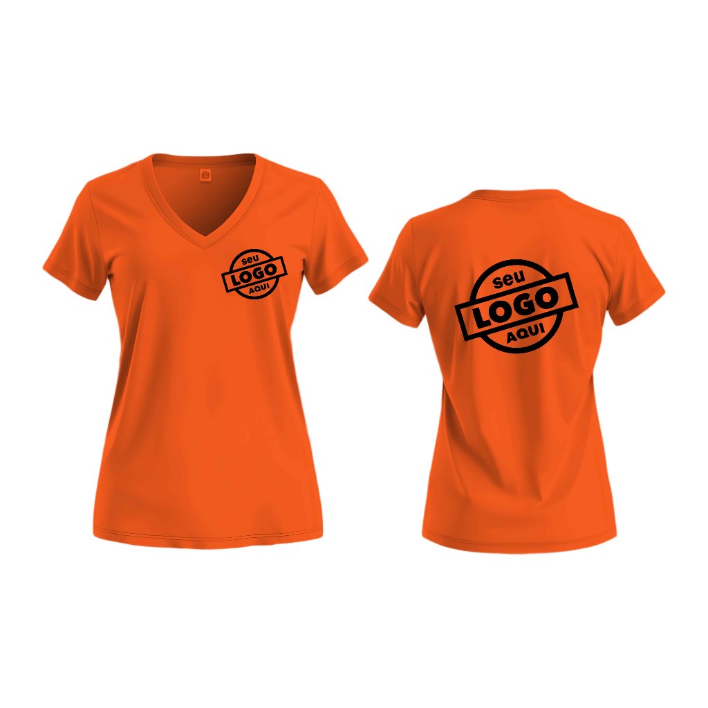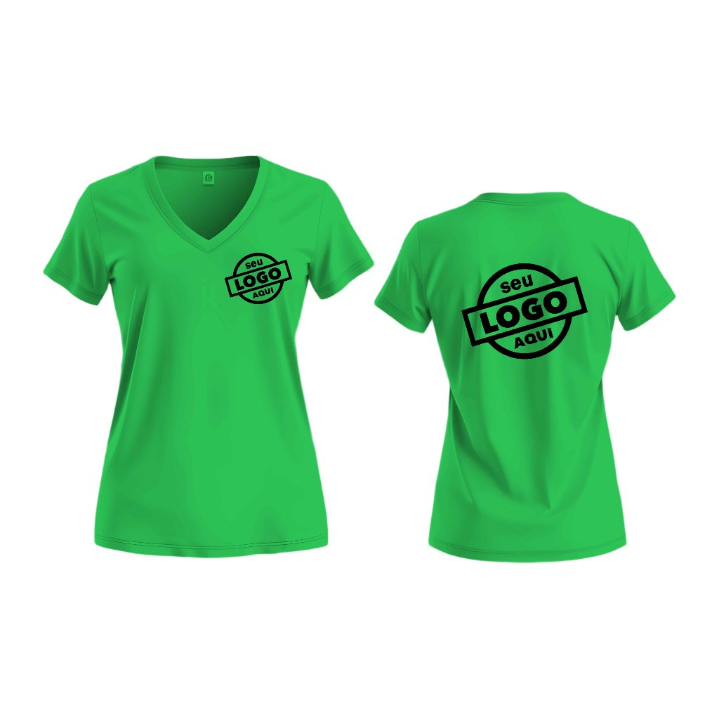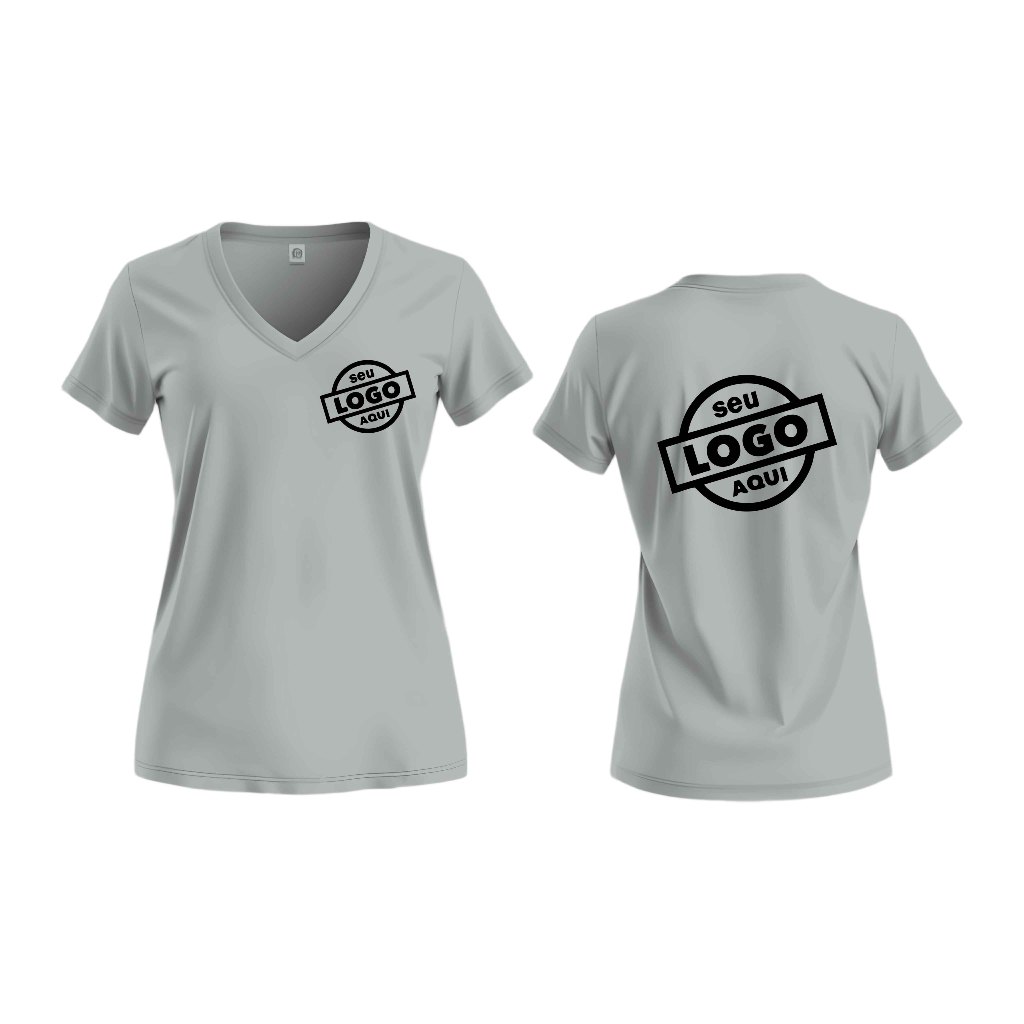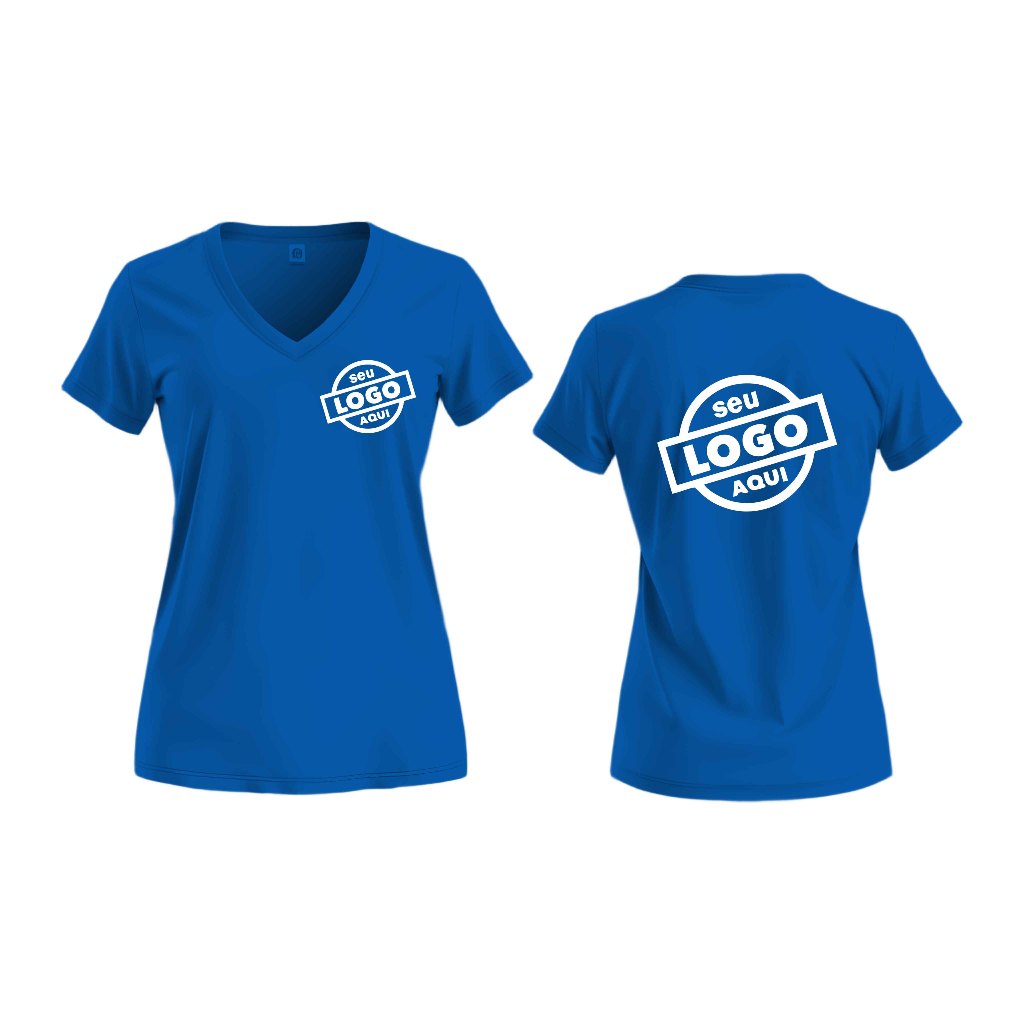 Camiseta Feminina Personalizada Sua Logo Frente e Costas Reforço Ombro a Ombro 100% Algodão