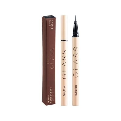 Caneta Delineadora Marrom Escuro Glass Ruby Rose - Secagem Rápida, Ponta Precisa, Design Moderno