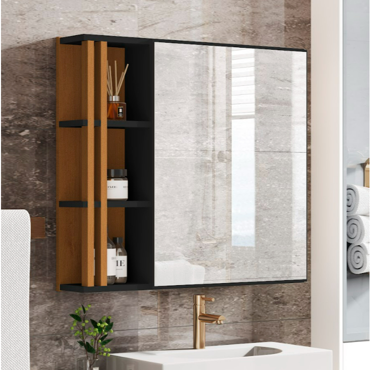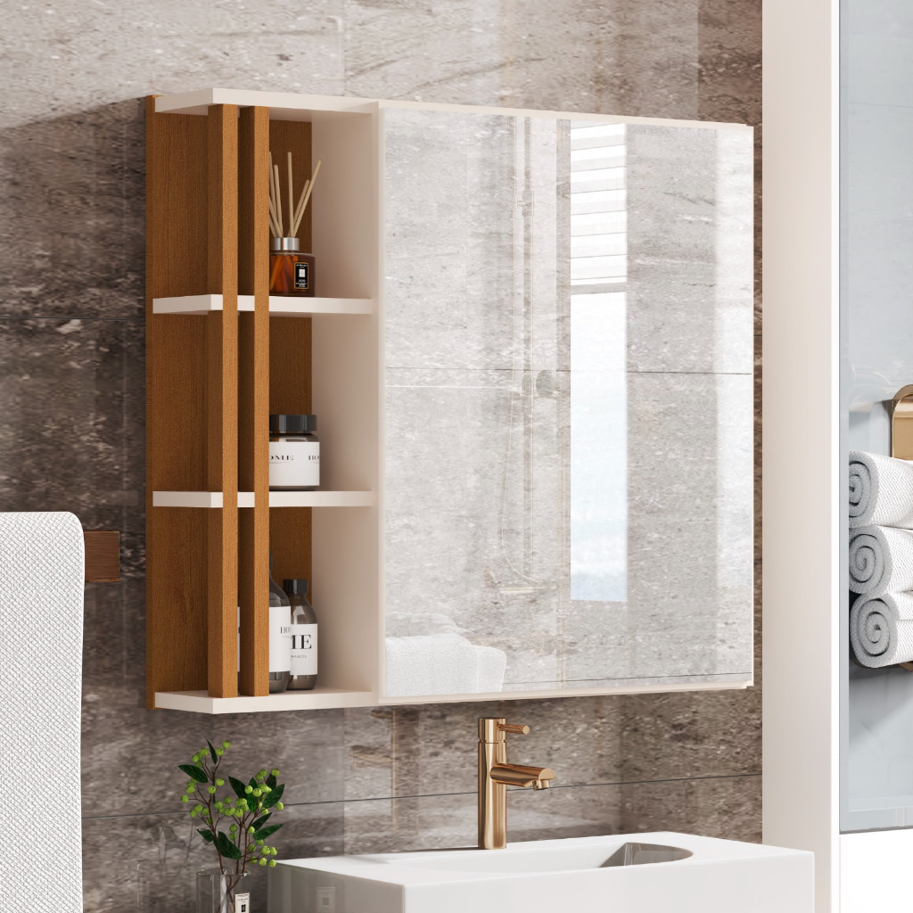 Armário Banheiro Suspenso Nix com Espelho e Nichos Laterais – 60cm