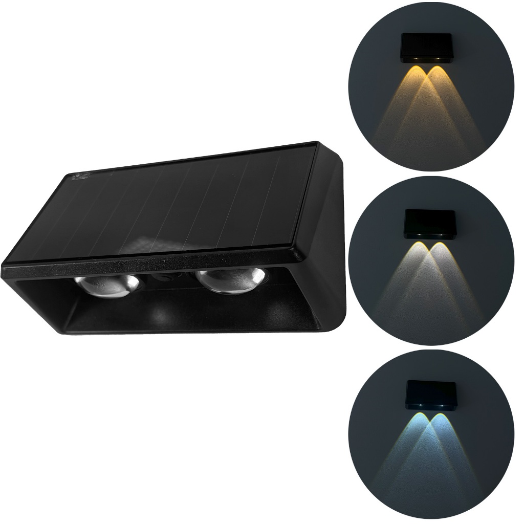 Arandela Solar 1 Foco 2 Facho Parede 3 Tons De Luz Led Ip65 Jardim Externo Garagem Area gourmet