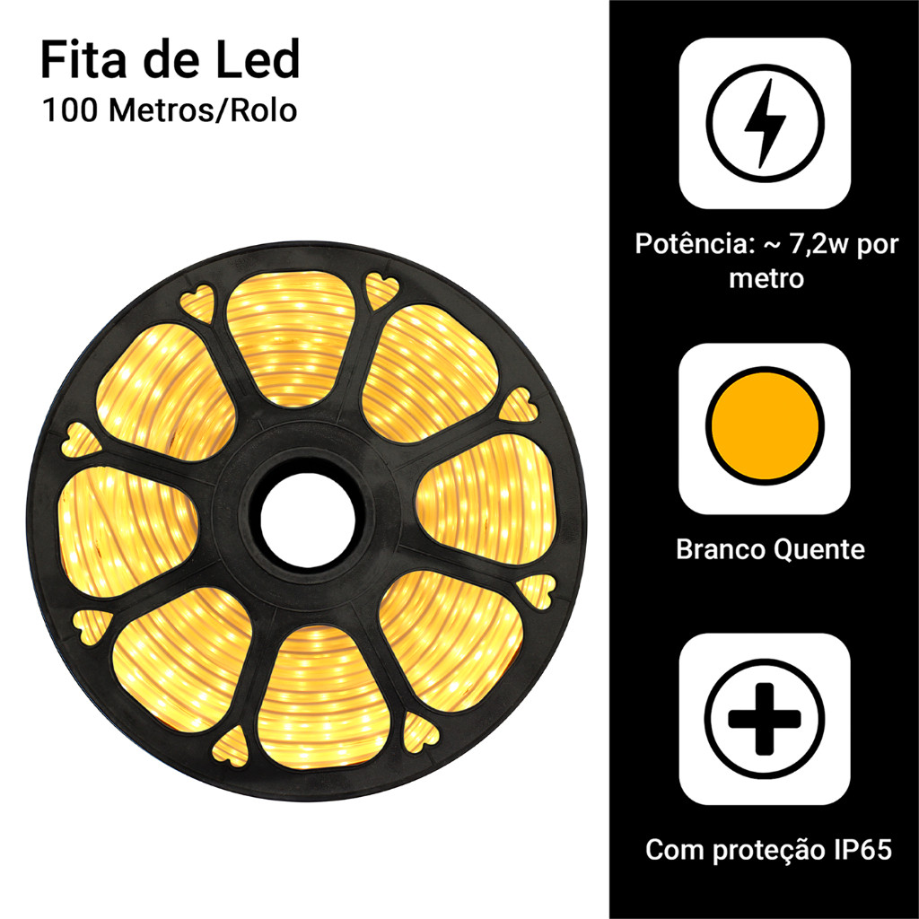 Fita Led 5050 Com fonte 110v ou 220v 20 Metros Provad'água Luz Quente