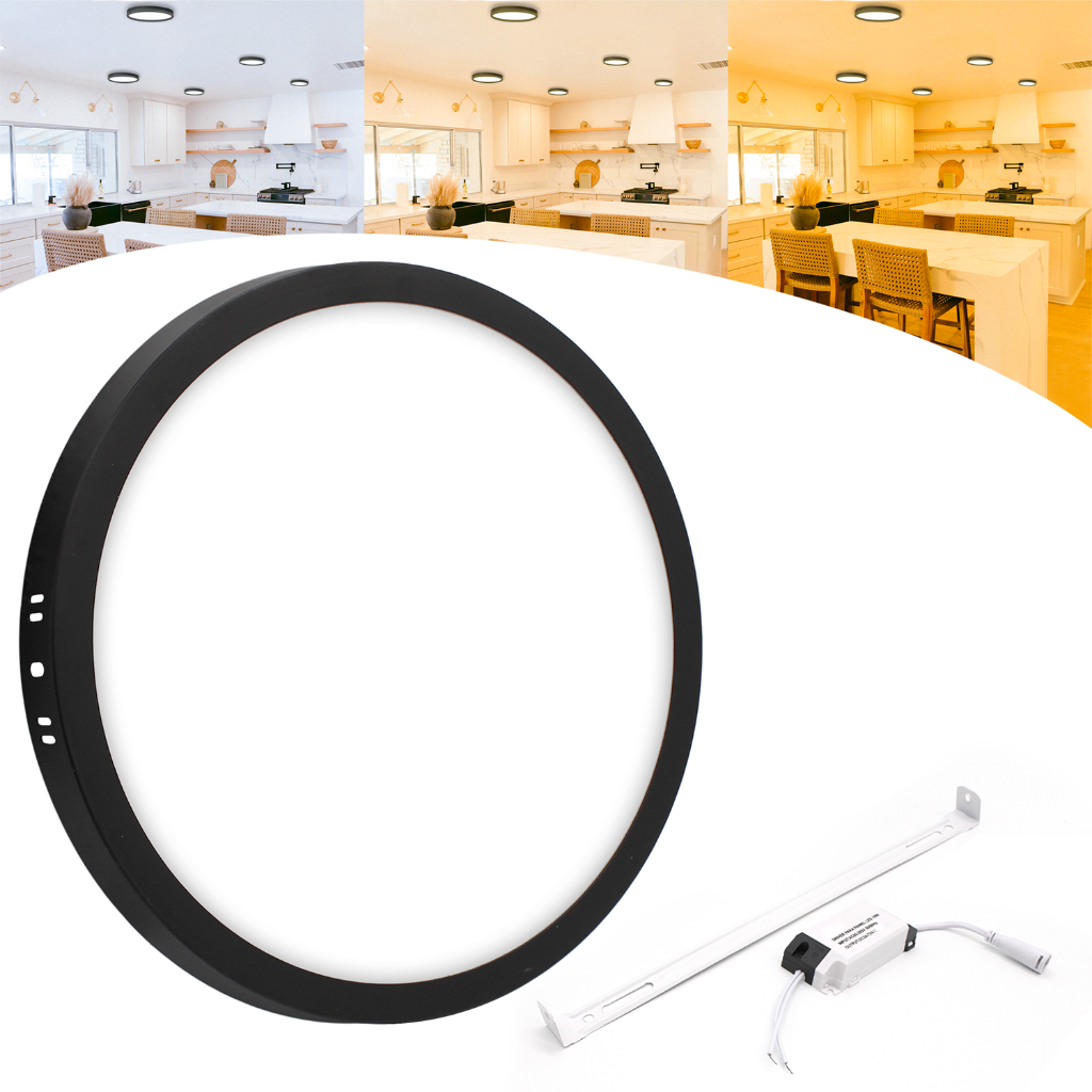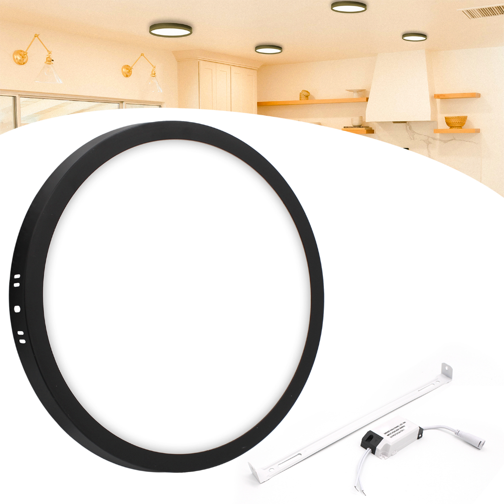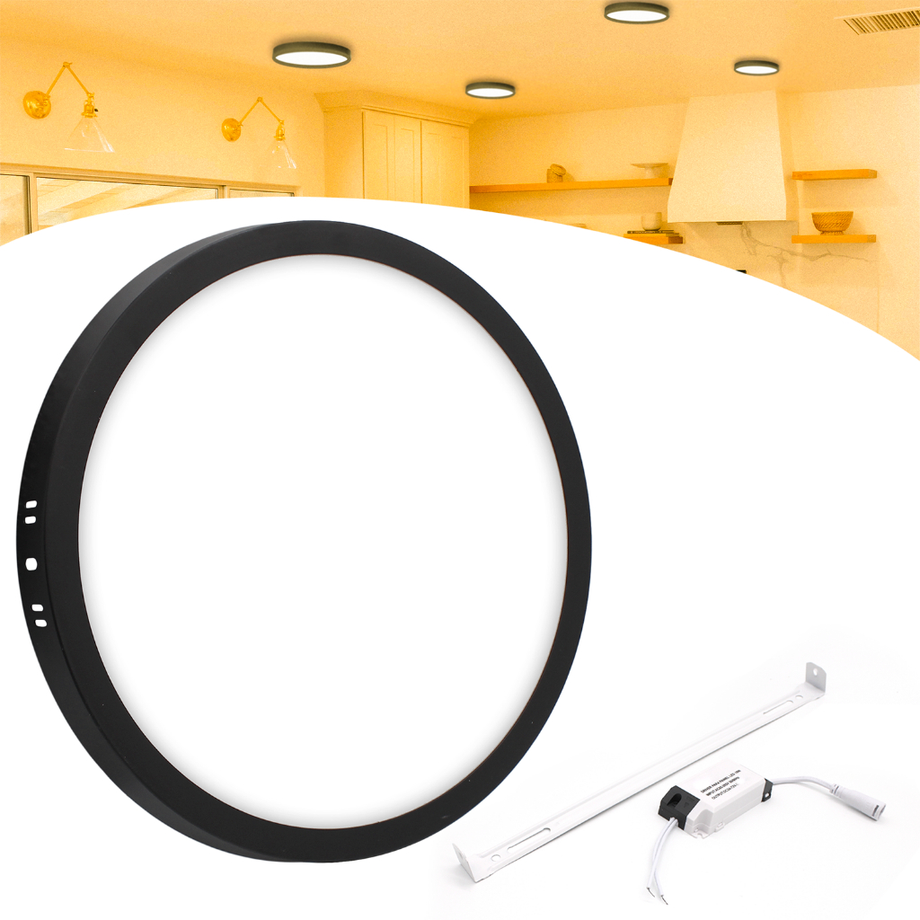 Painel Plafon Led 18w Sobrepor Redondo Preto Bivolt