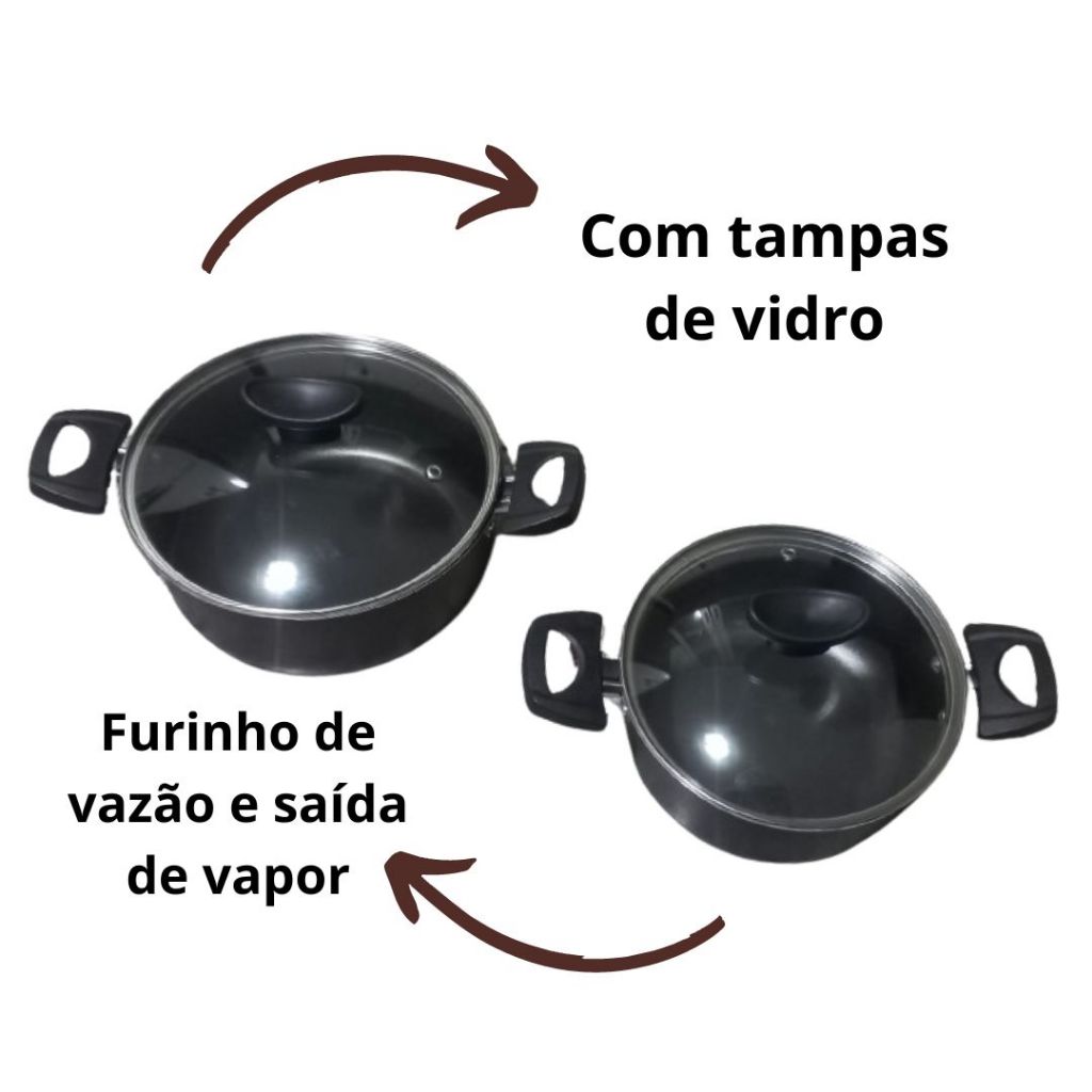 Conjunto de 2 panelas caçarolas Teflon antiaderente 16 e 18