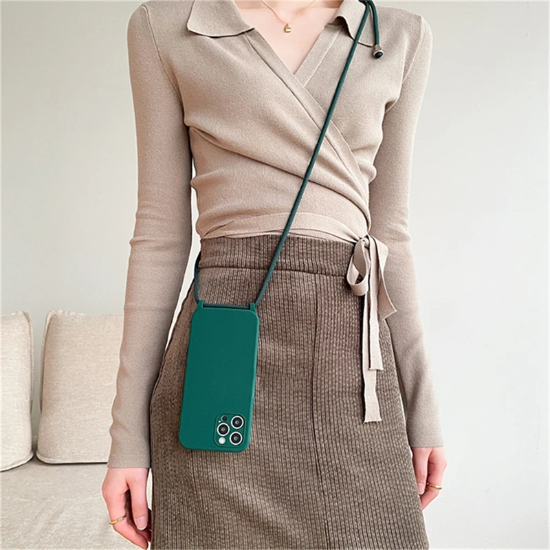 Capa Capinha Aveludada com Cordão Alça Crossbody Para iPhone 15 plus