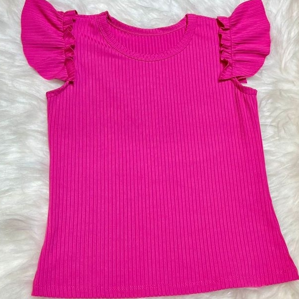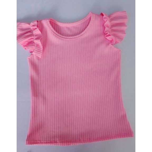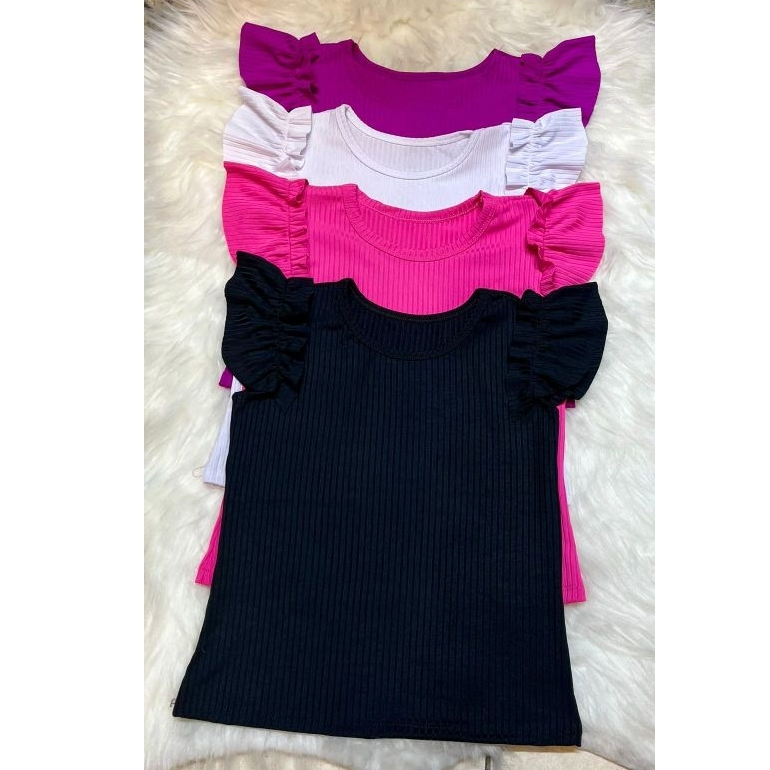 blucinha manga babado infantil juvenil malha canelado