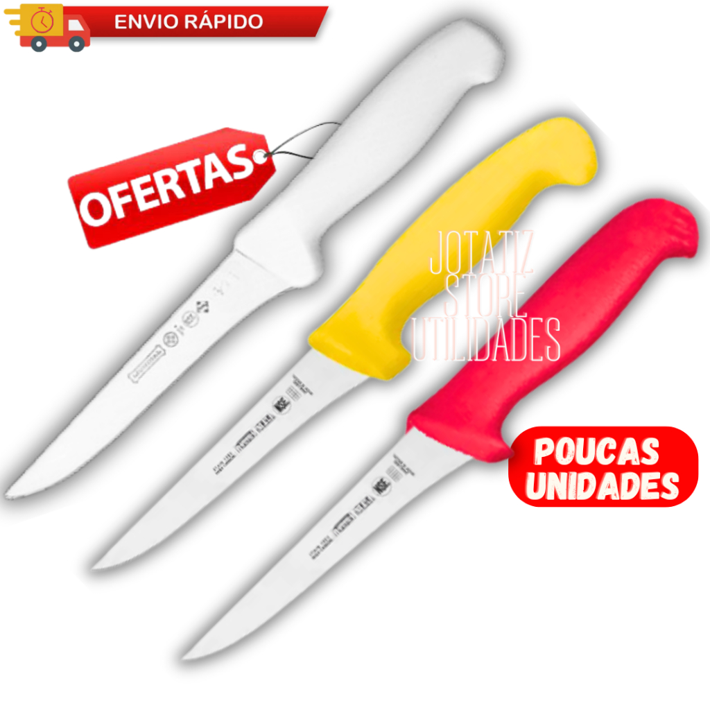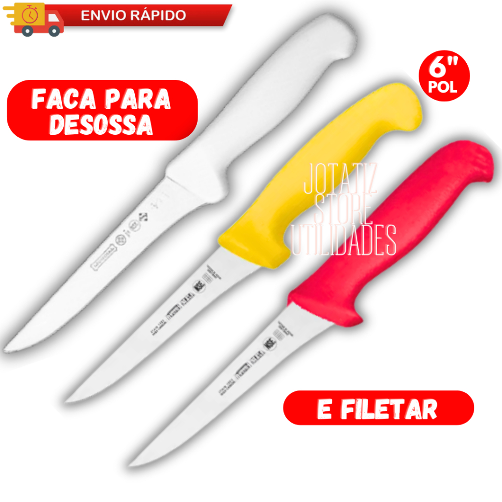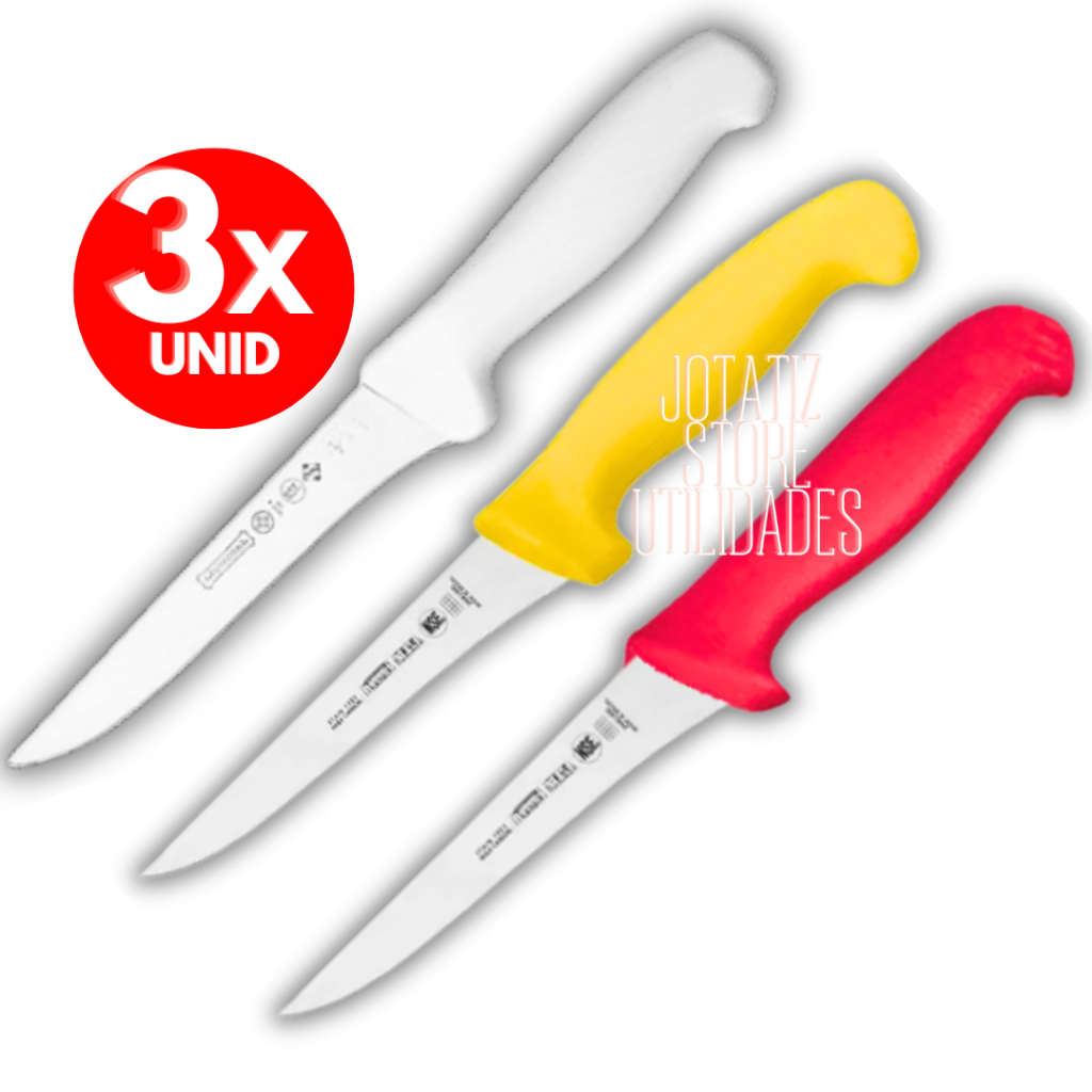 Kit Faca De Desossar Profissional 6 Pol Branca Amarela Vermelha Reta Premium Para Desossa Açougue Frigorífico Indústria