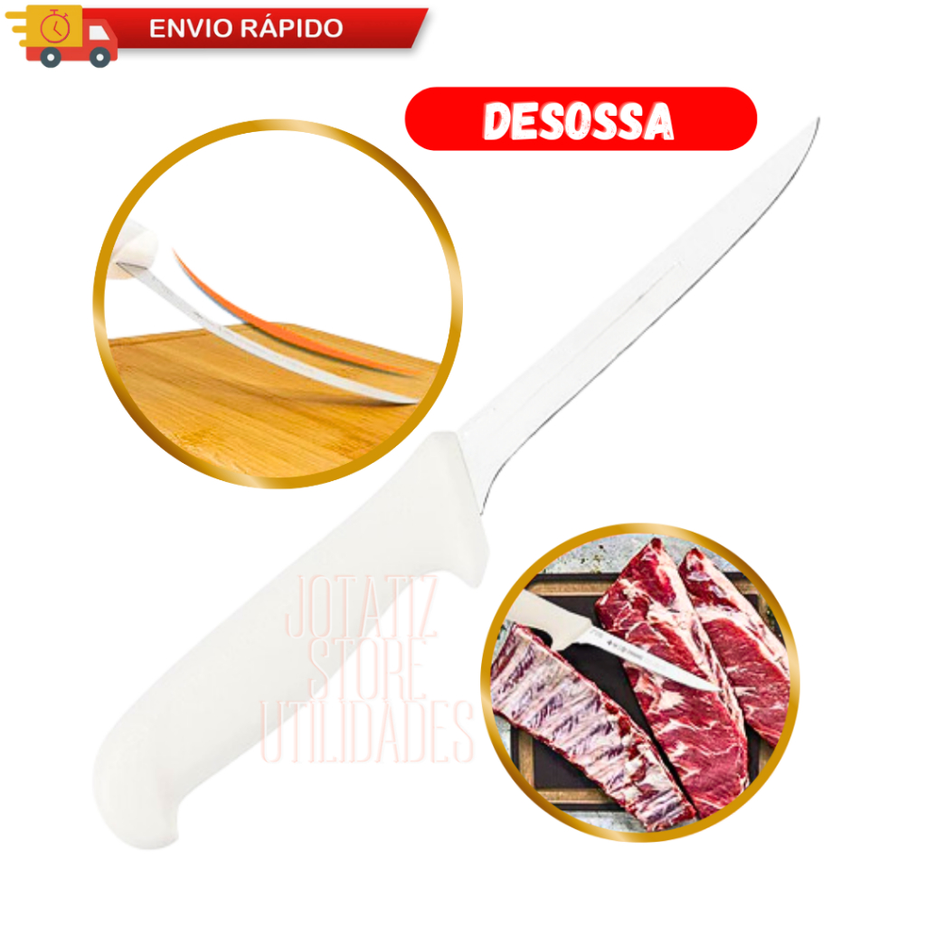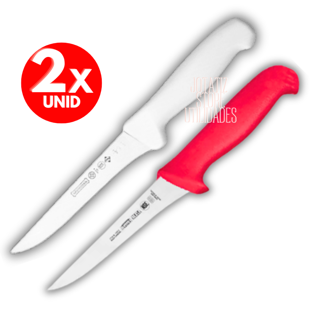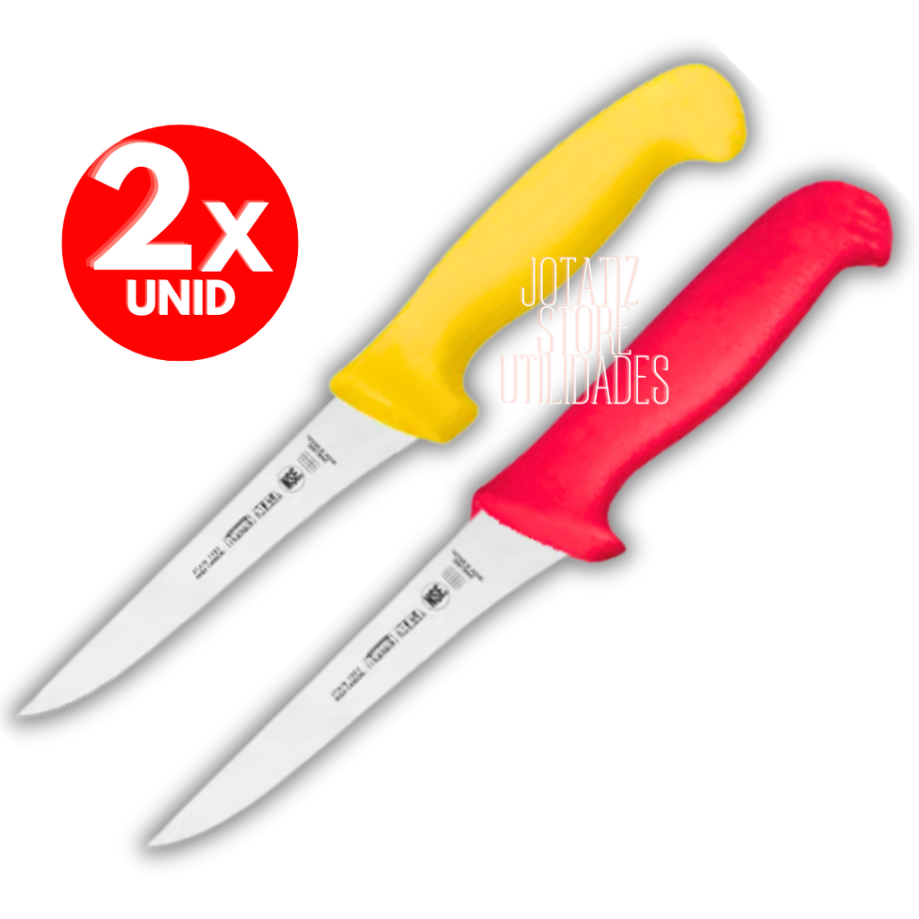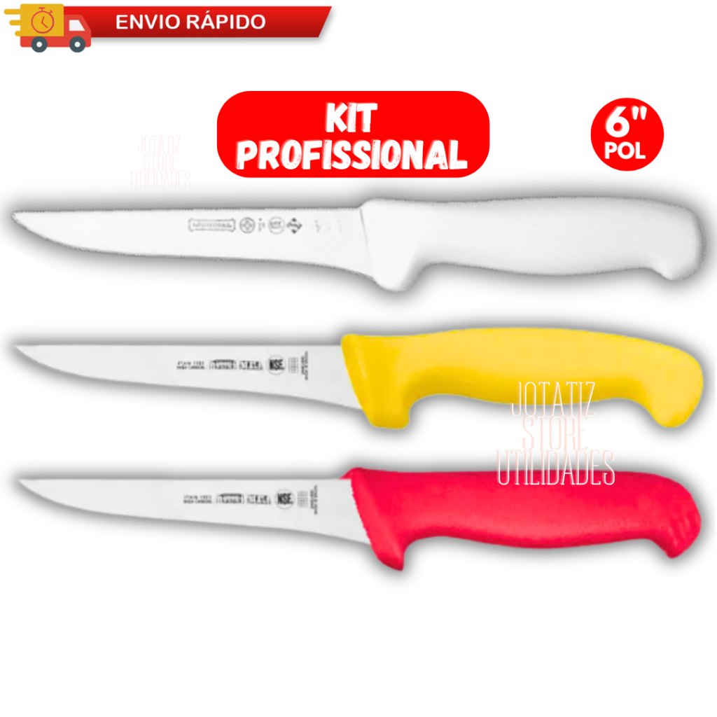 Kit Faca De Desossar Profissional 6 Pol Branca Amarela Vermelha Reta Premium Para Desossa Açougue Frigorífico Indústria