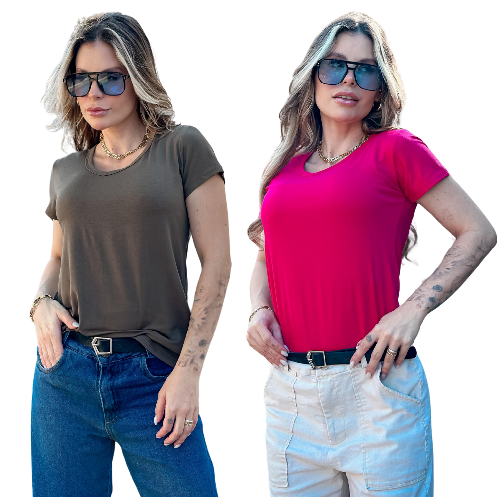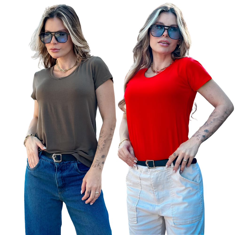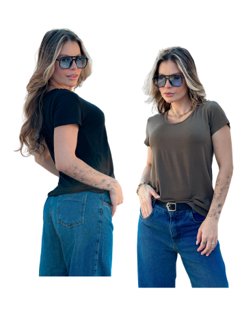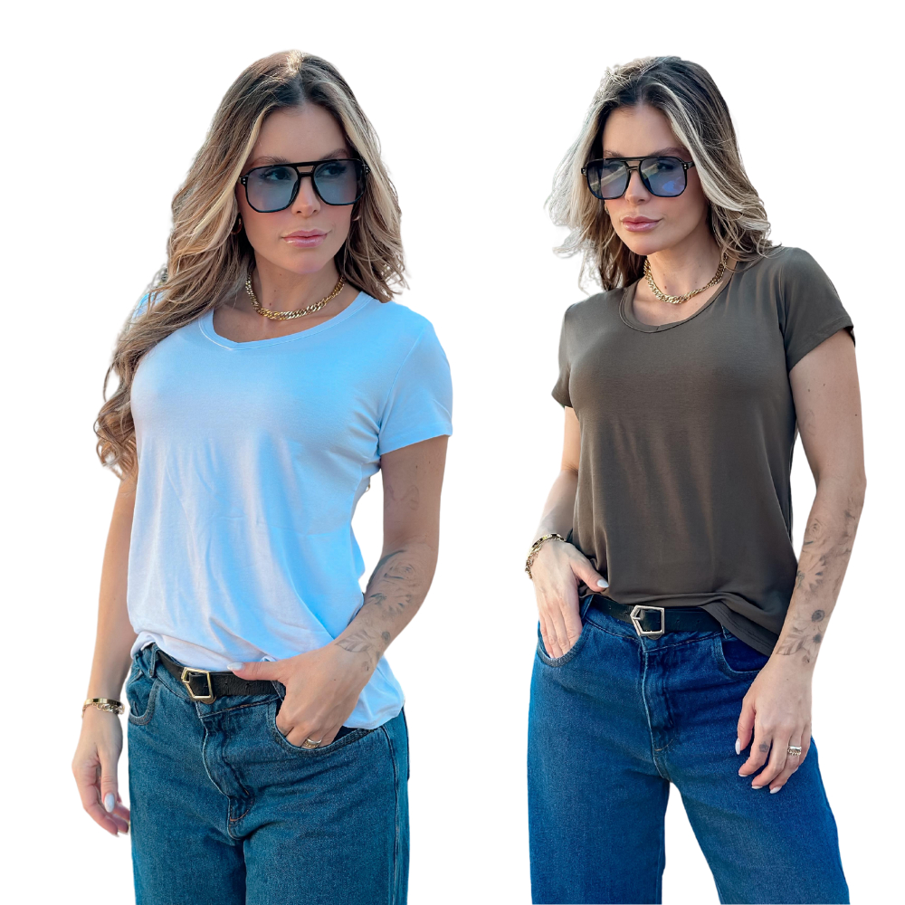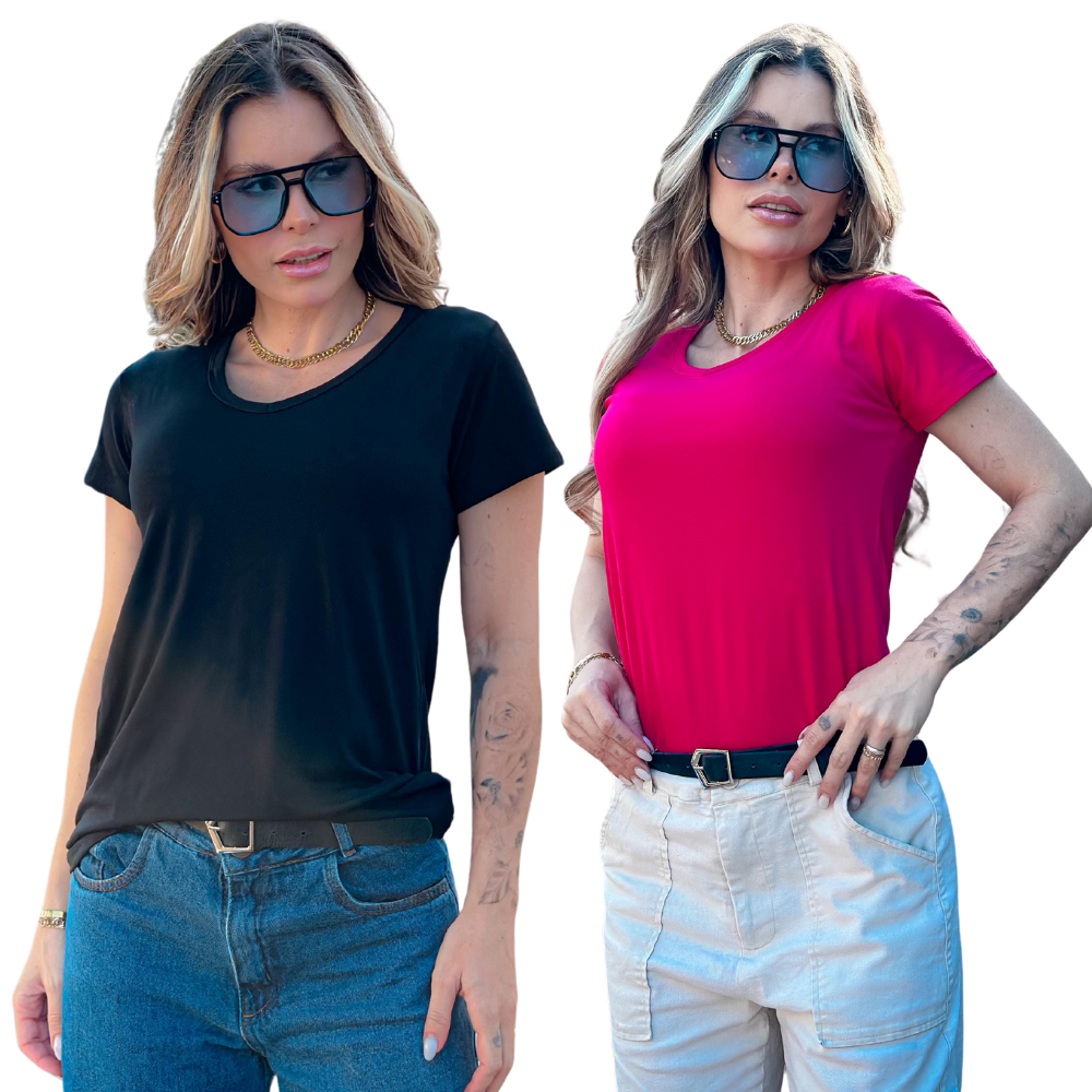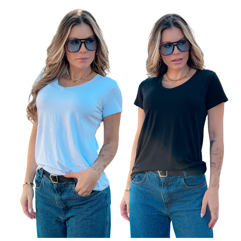 Kit 2 Blusas Feminina Manga Curta Gola V T-Shirt