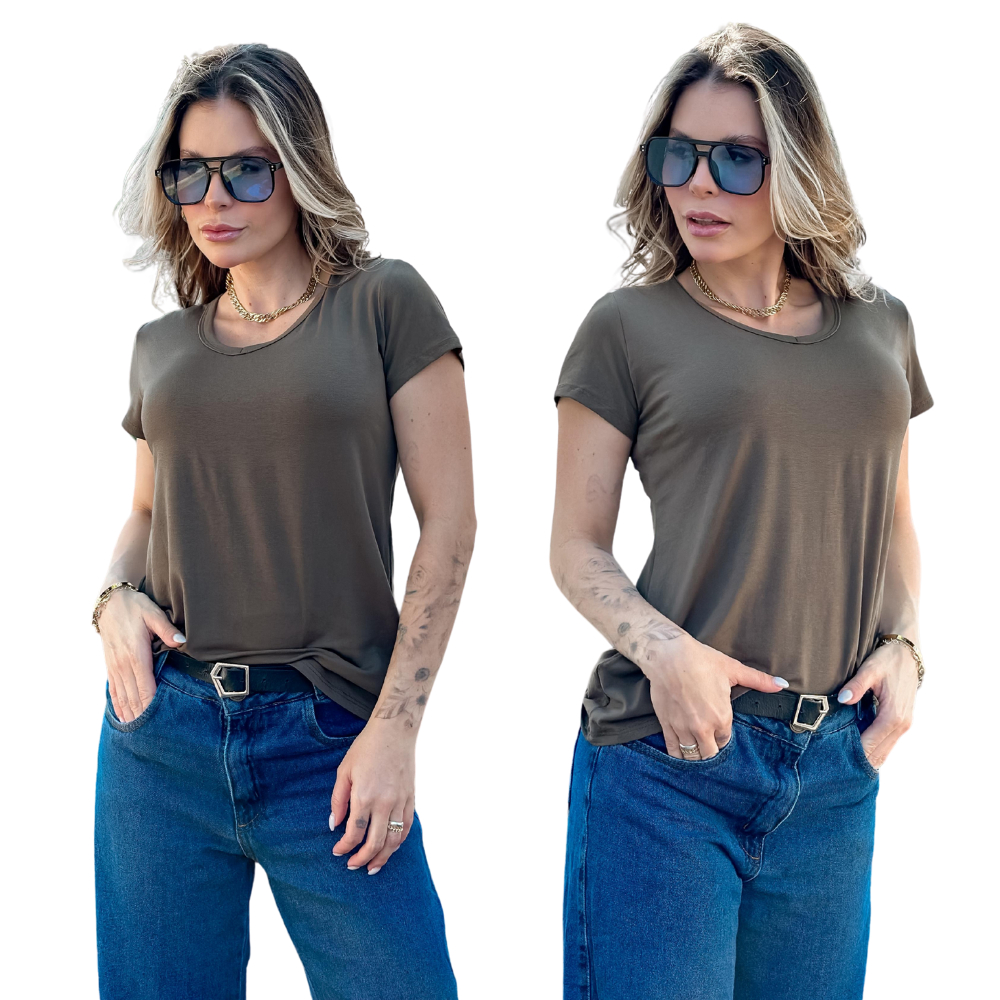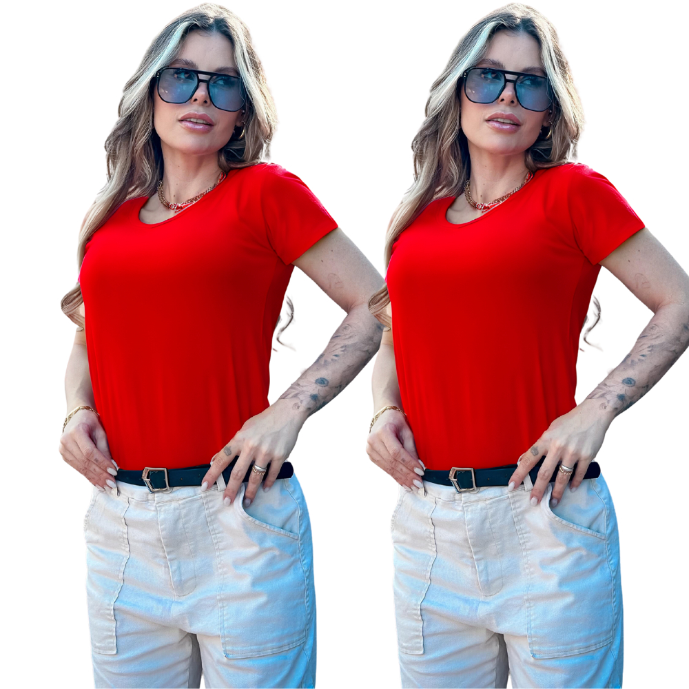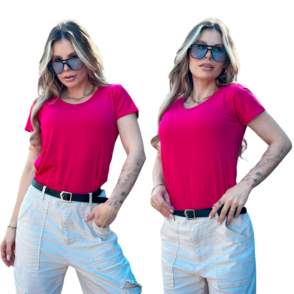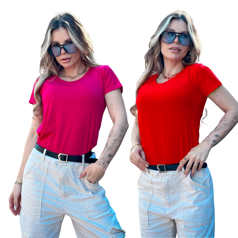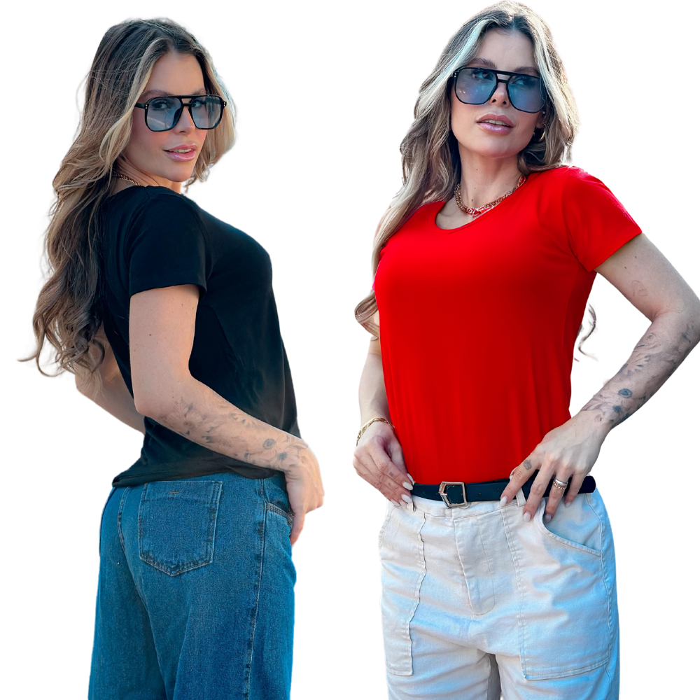Kit 2 Blusas Feminina Manga Curta Gola V T-Shirt