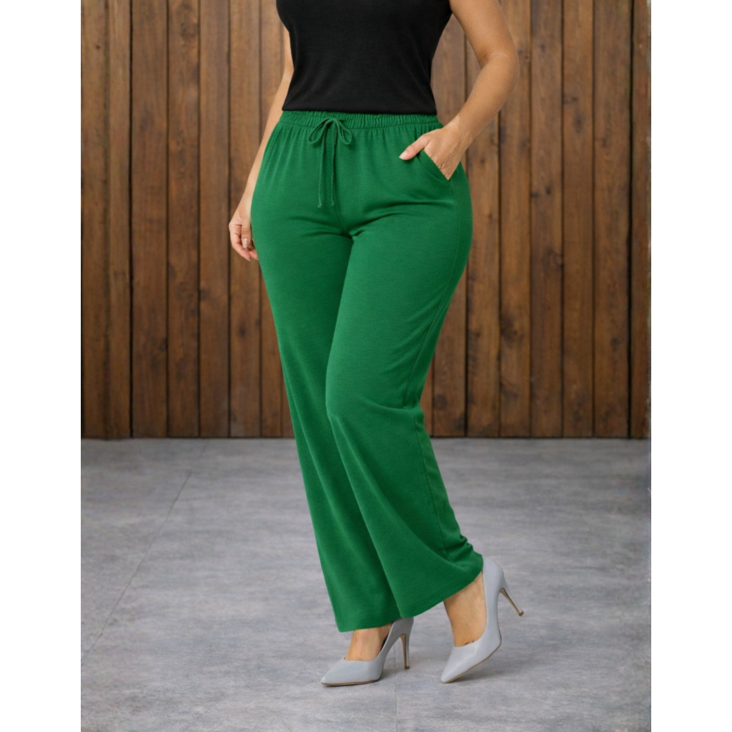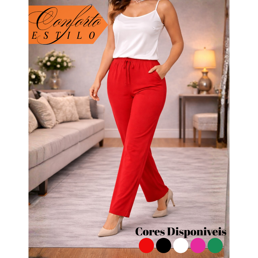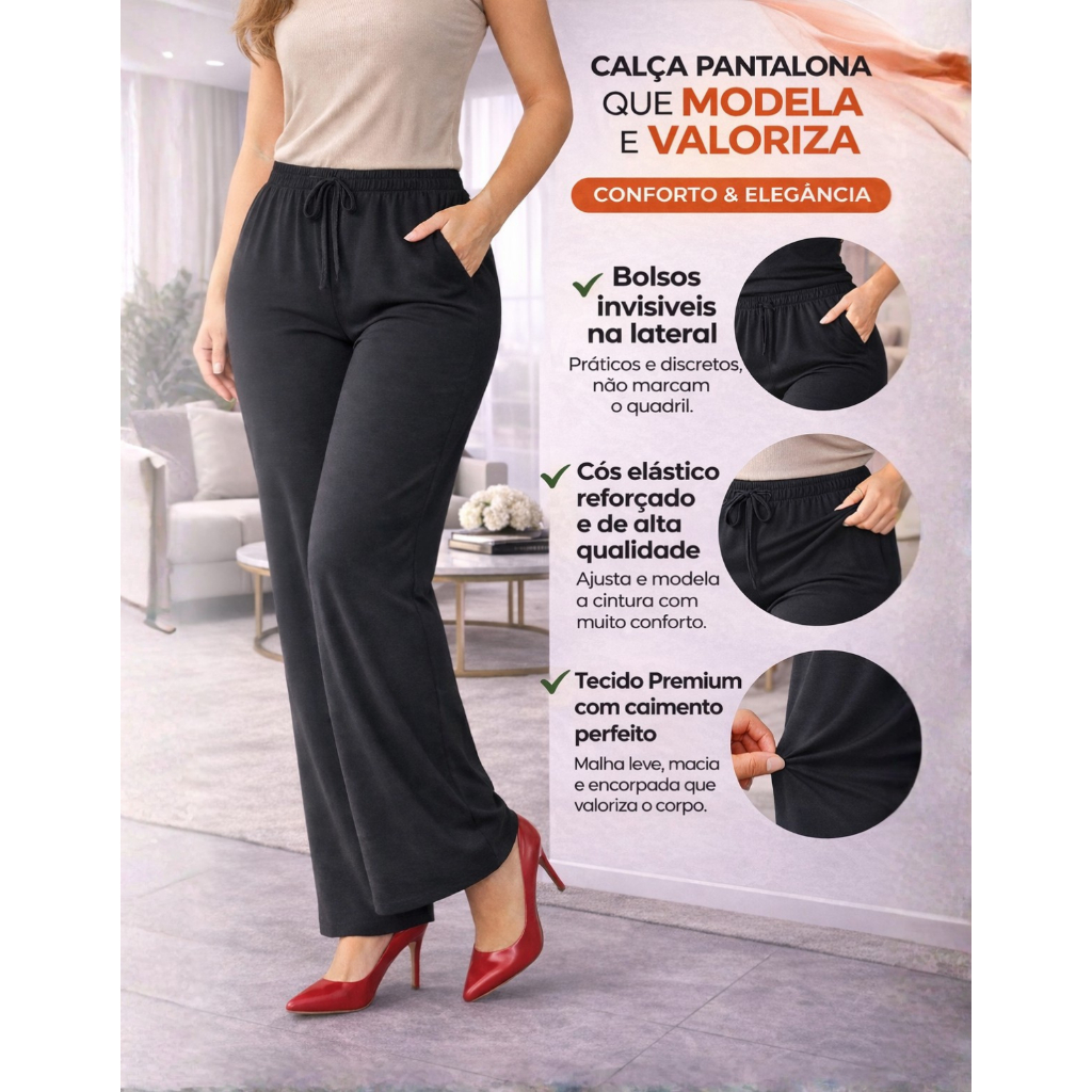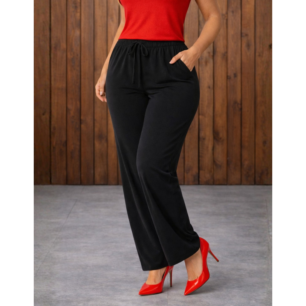 Calça Pantalona Viscolycra Cintura Alta Com Bolso