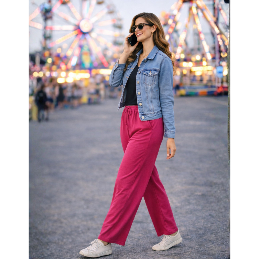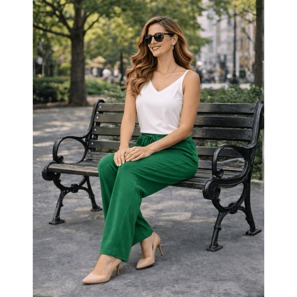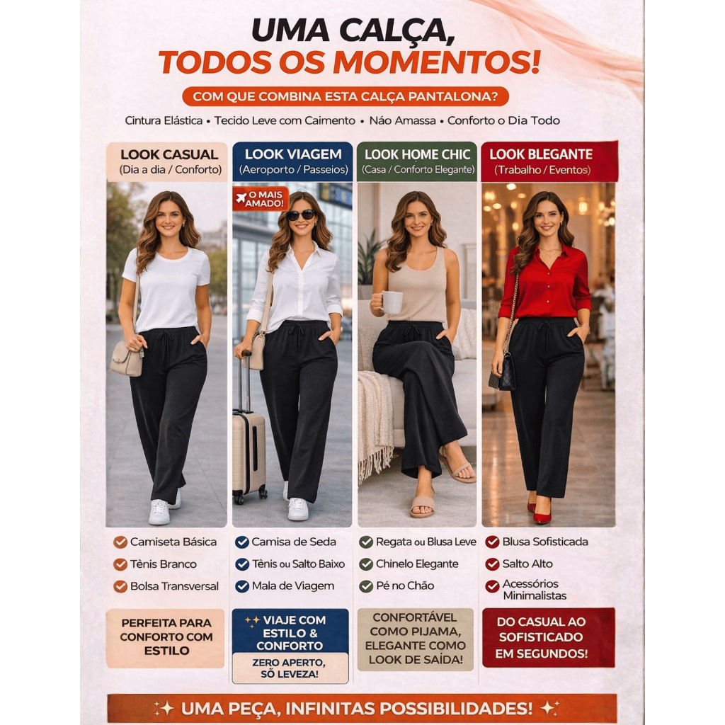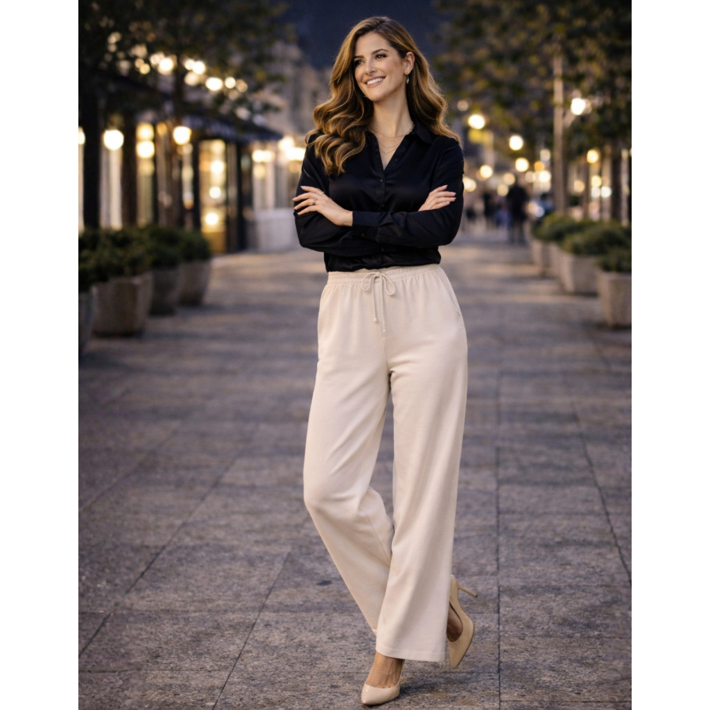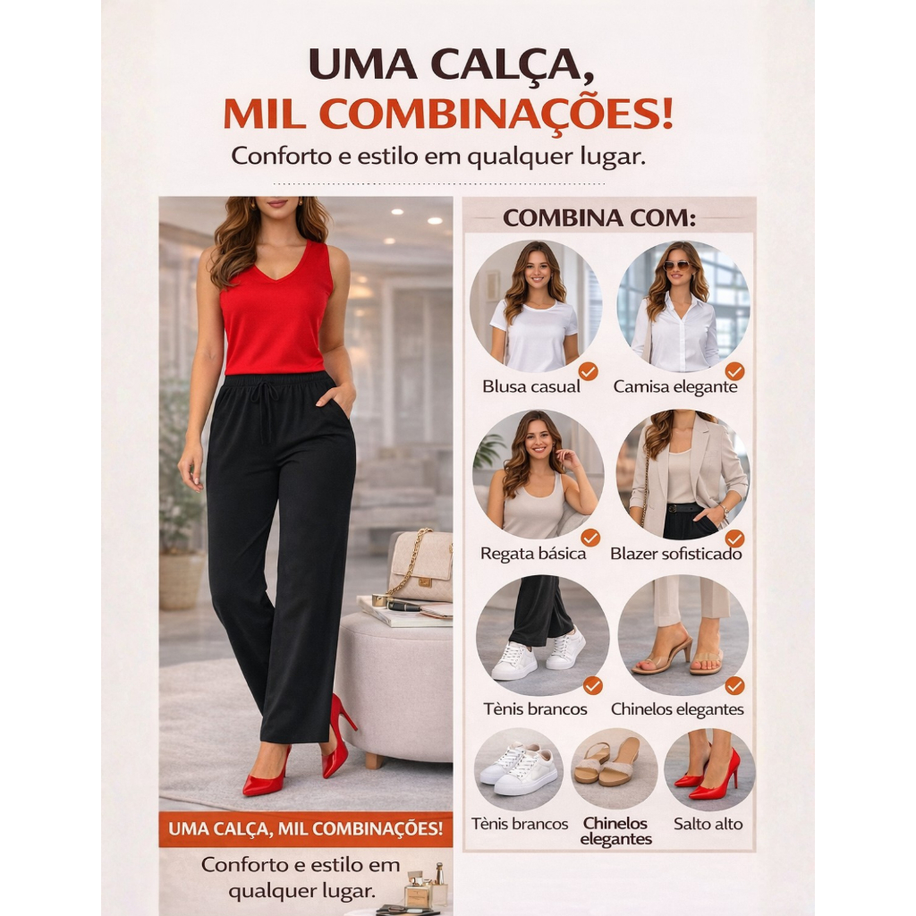 Calça Pantalona Viscolycra Cintura Alta Com Bolso