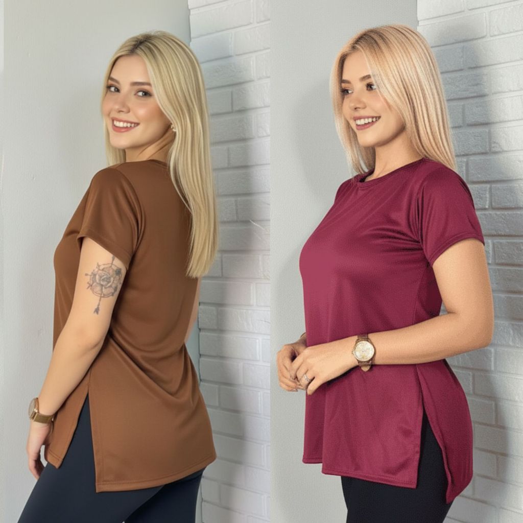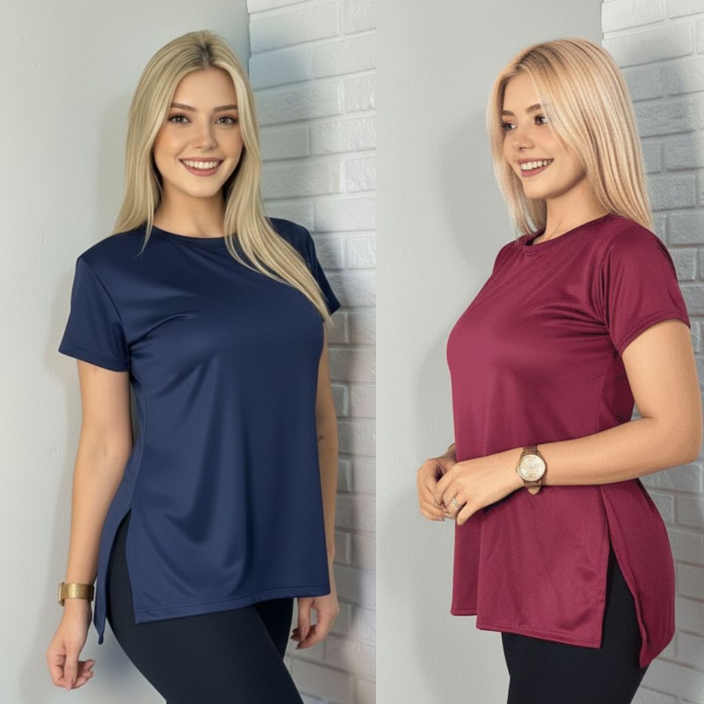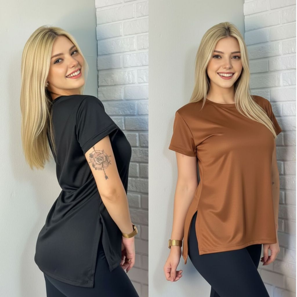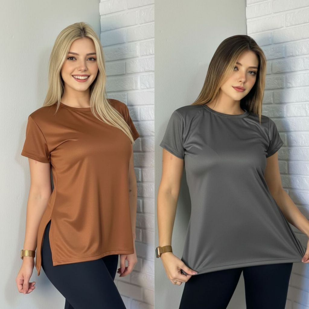 Kit 2 Blusas Feminina Academia Dry Fit Caminhada Musculação Treino Camiseta Tapa Bumbum