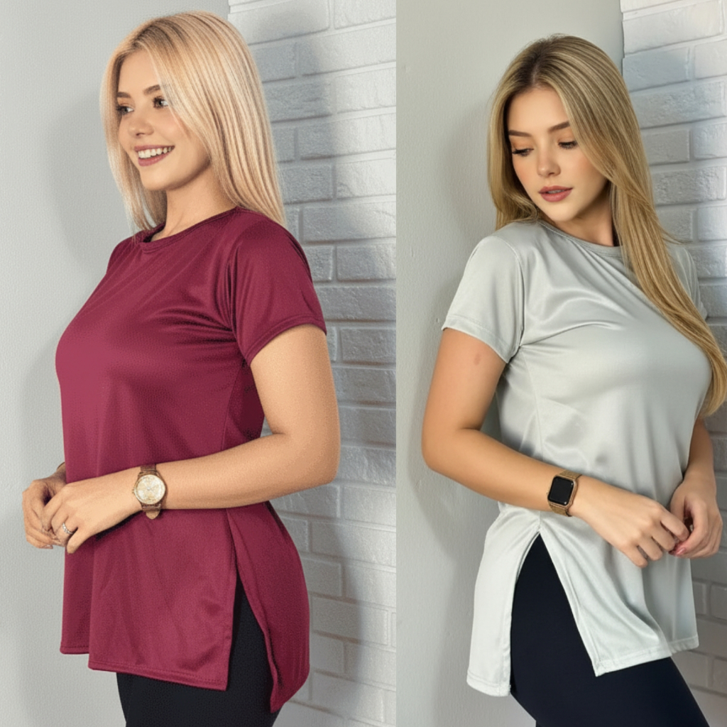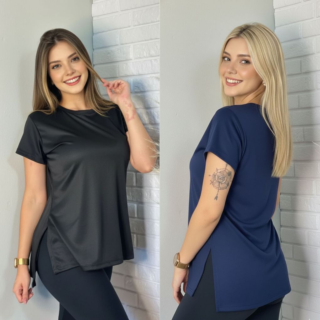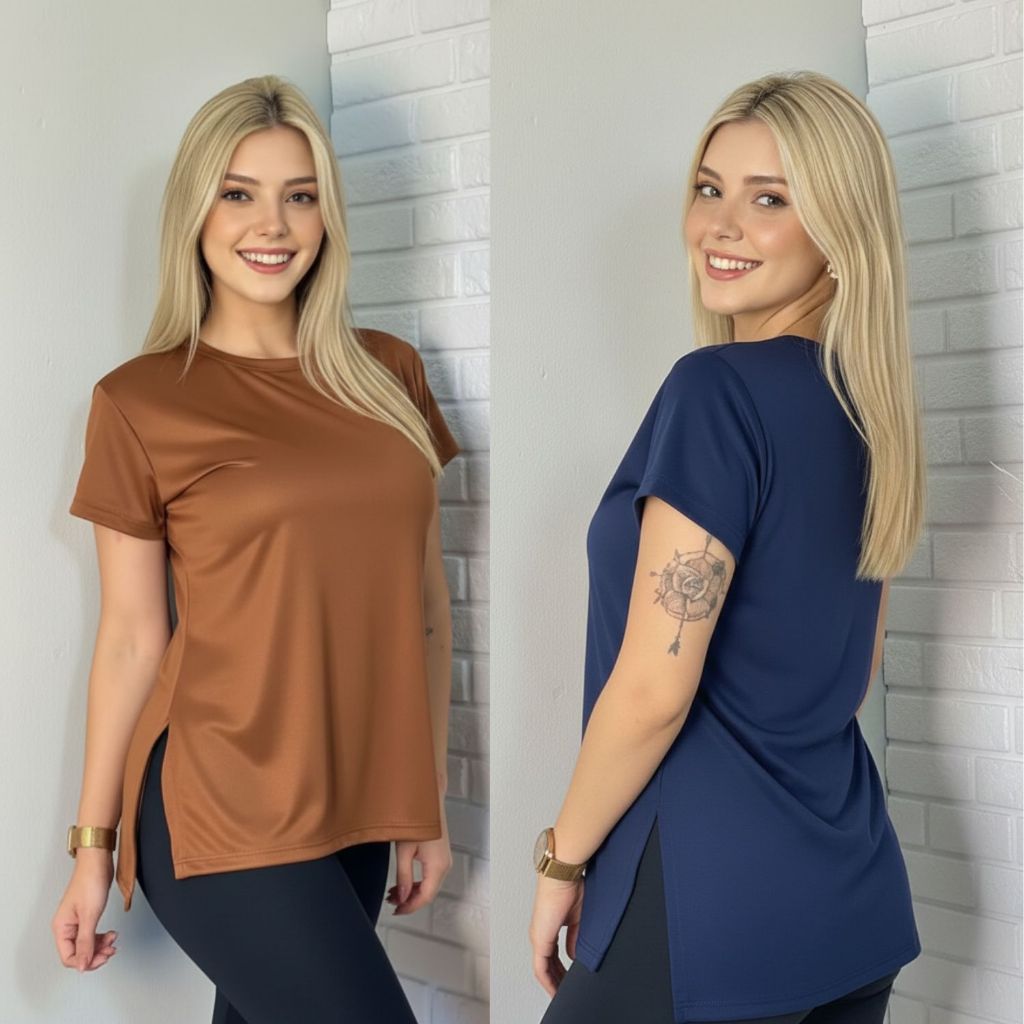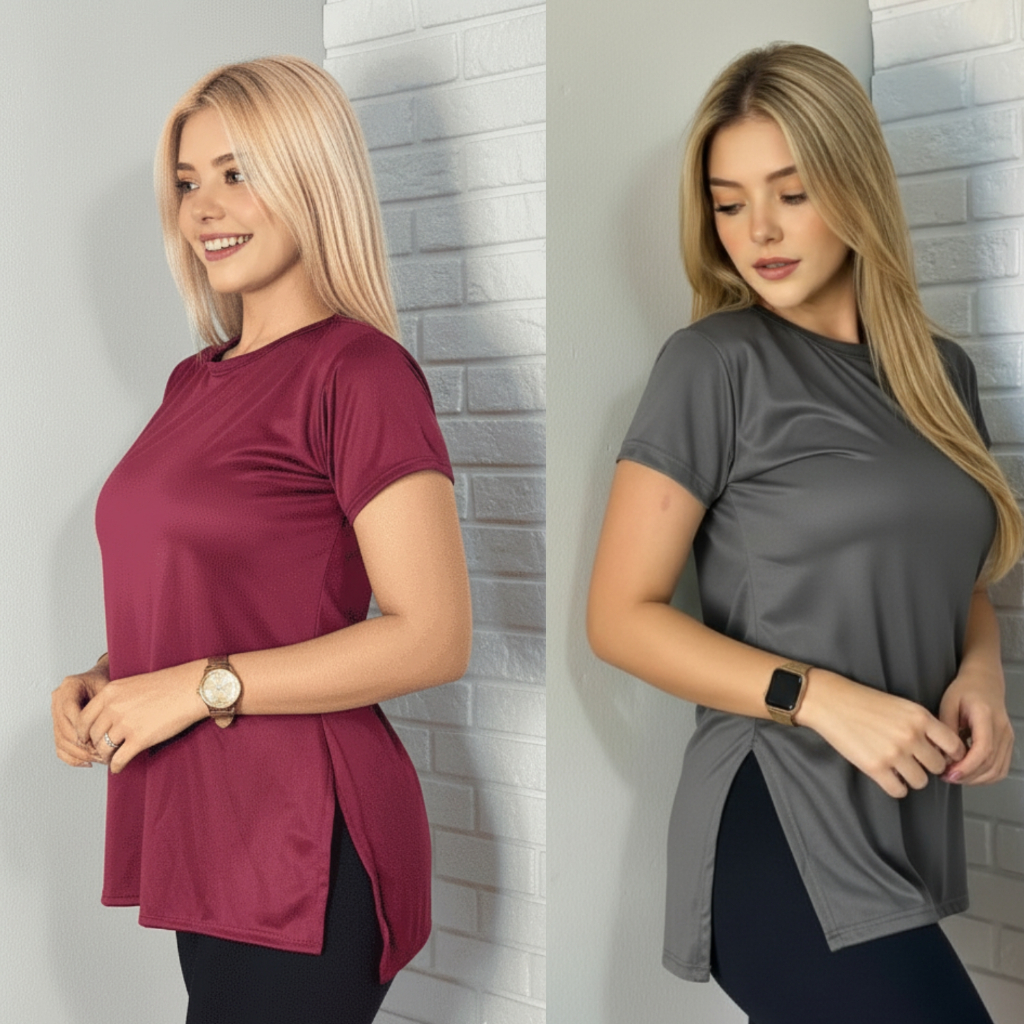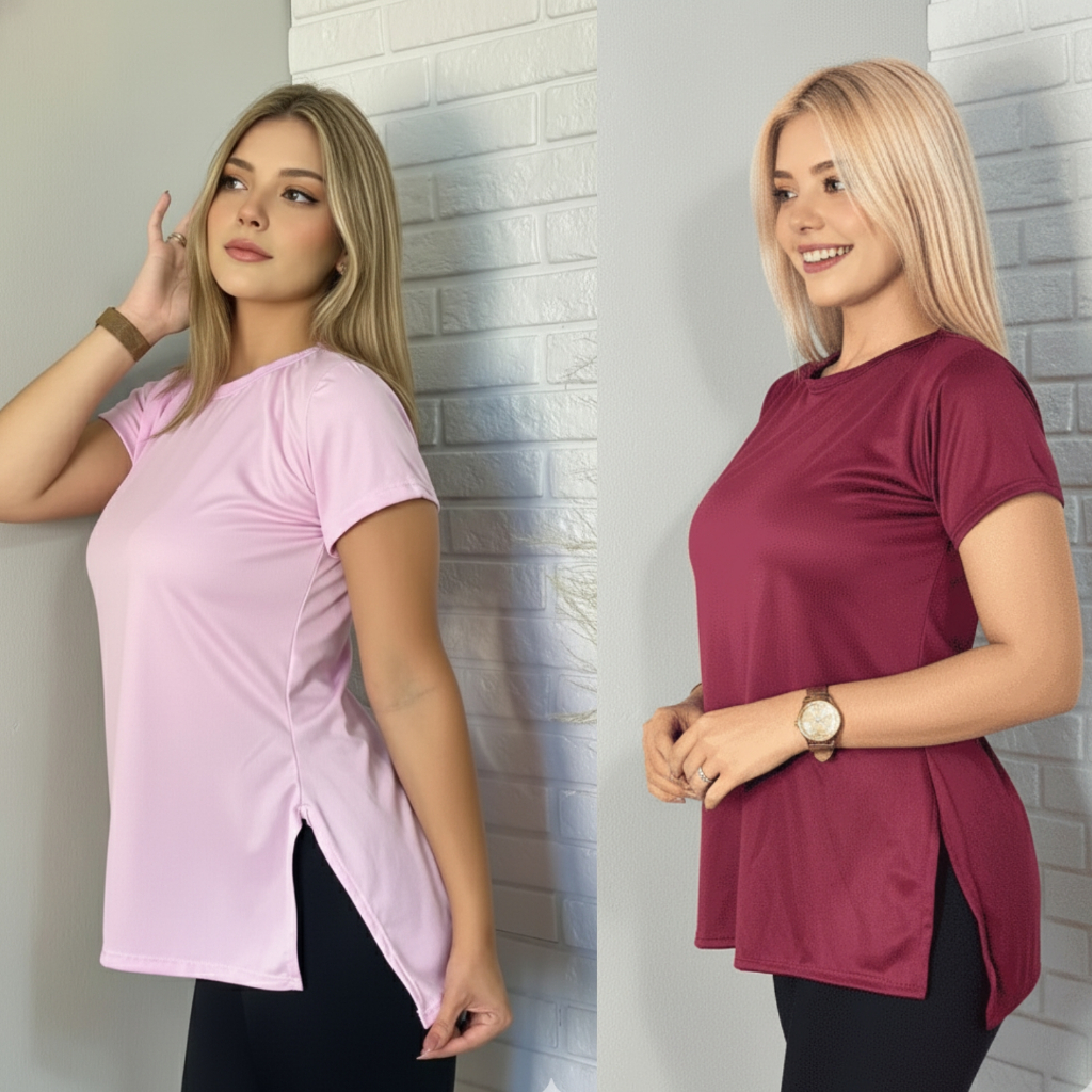 Kit 2 Blusas Feminina Academia Dry Fit Caminhada Musculação Treino Camiseta Tapa Bumbum