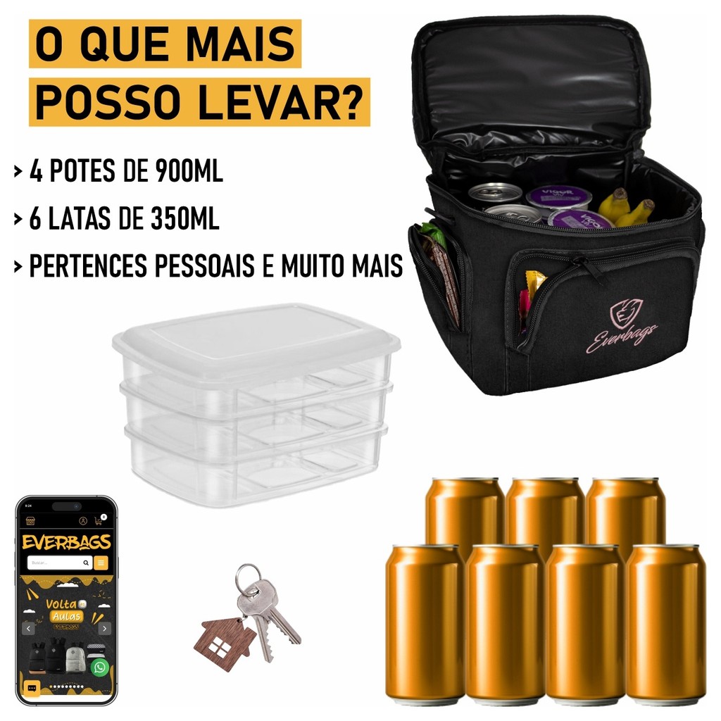 Bolsa Térmica Fitness Lancheira Marmita Portátil Talheres Alimentar Dieta Academia Treino Reforçado
