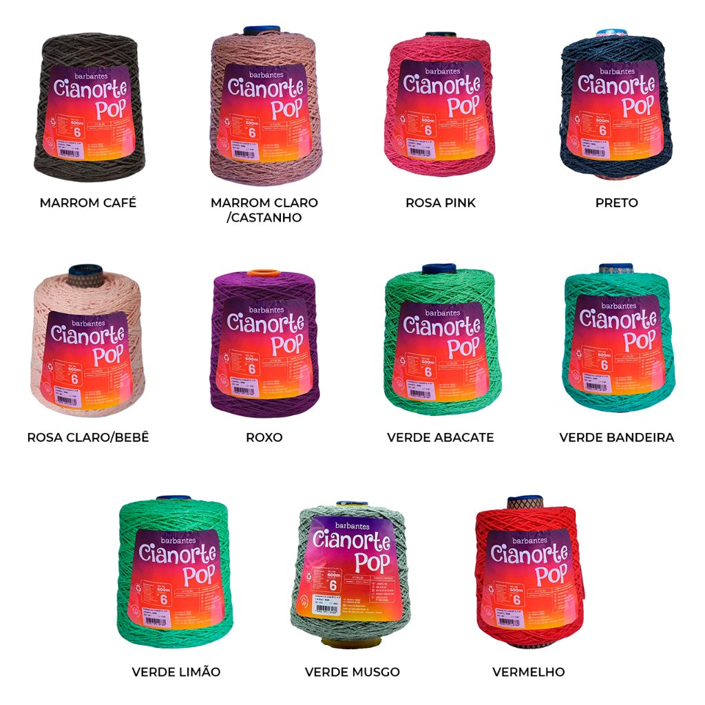 Kit 2 Rolos Barbante CiaNorte Pop 600 metros coloridos para crochê/tricô
