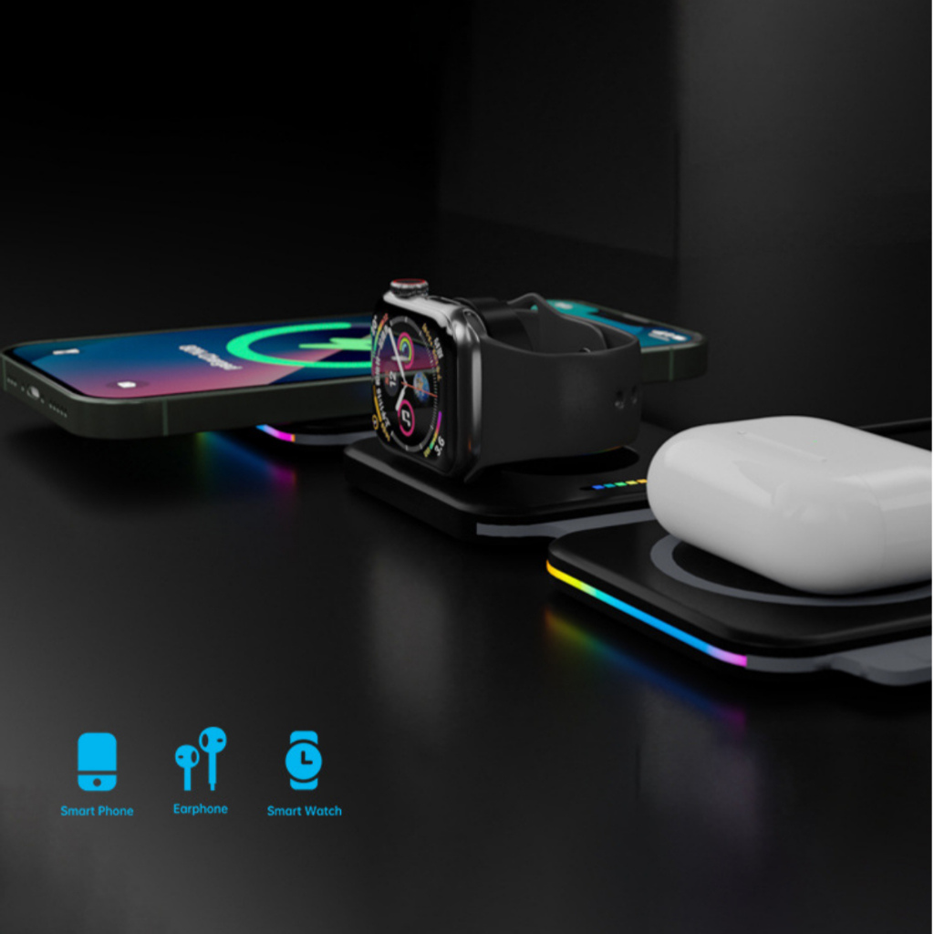 Suporte de Carregamento Sem Fio 3 em 1 - Dobrável e Rápido para Celulares J9