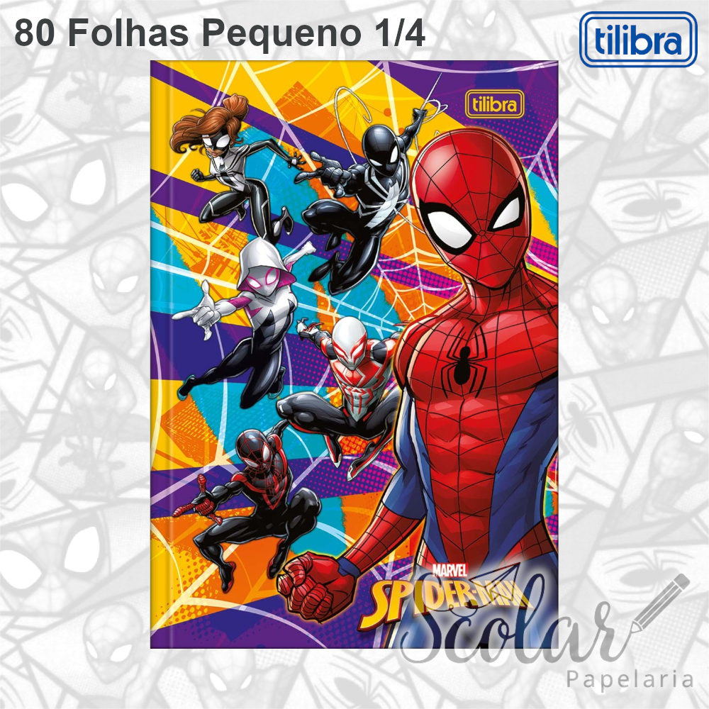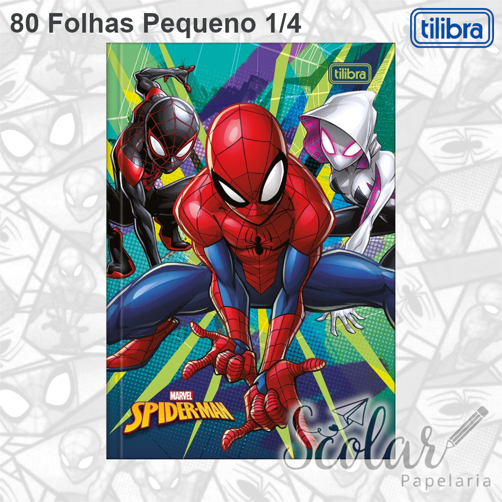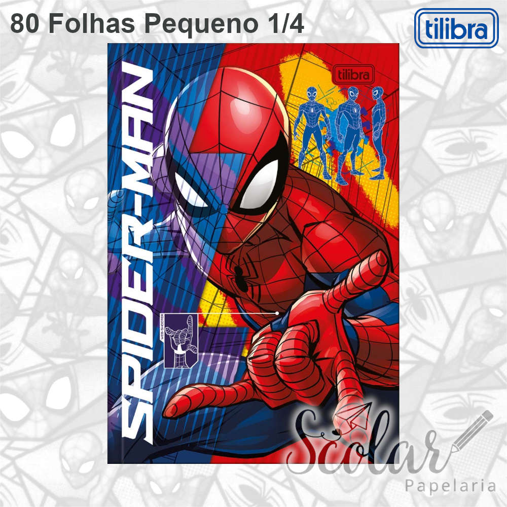 Caderno Brochura 1/4 PEQUENO Homem Aranha Marvel Spider Man Capa Dura 80 Folhas Com Adesivos Tilibra
