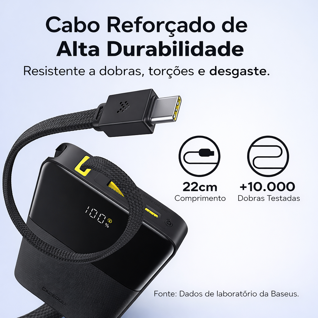 PowerBank Baseus EnerFill FC51 10000mAh 22.5W Display Digital Cabo Embutido USB-C Compacta
