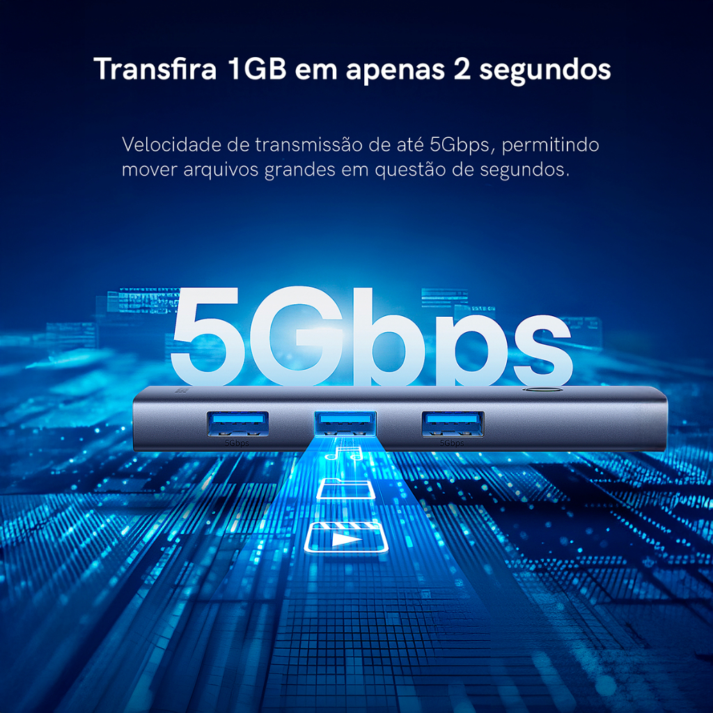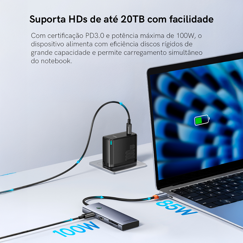 Hub Baseus UltraJoy 7 em 1 USB-C HDMI 4K 60Hz PD 100W USB 3.0 SD/TF Plug & Play Mac/Windows