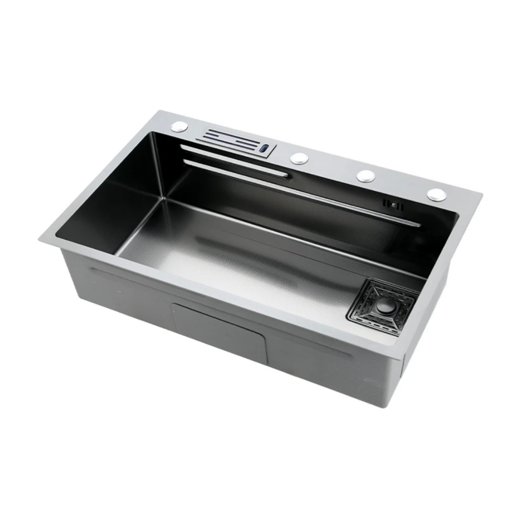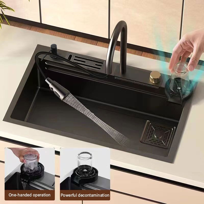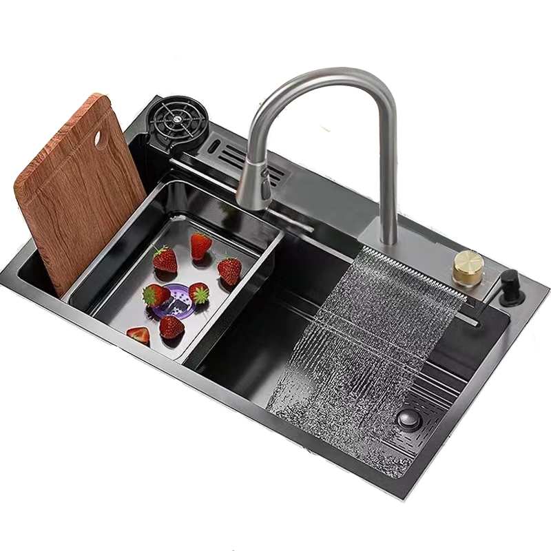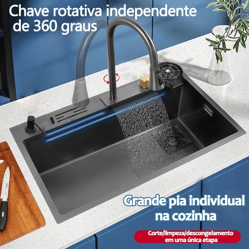 Pia de cozinha de aço inoxidável combinada com torneira preto 75cm