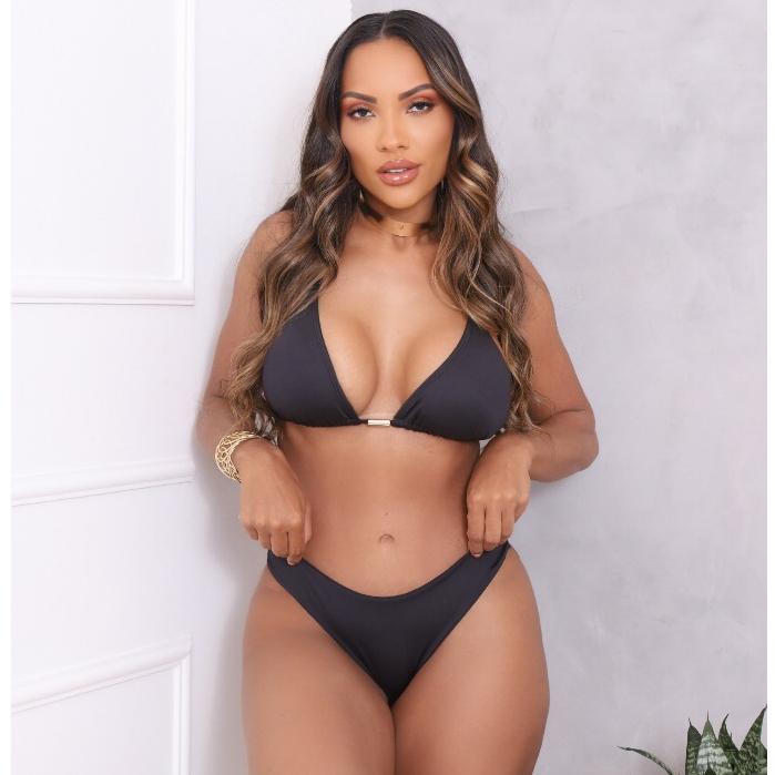 Conjunto Biquíni Feminino Fio Duplo Top Cortininha Com Forro Duplo